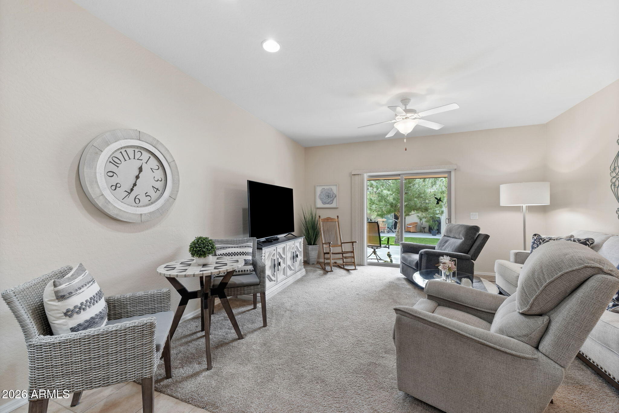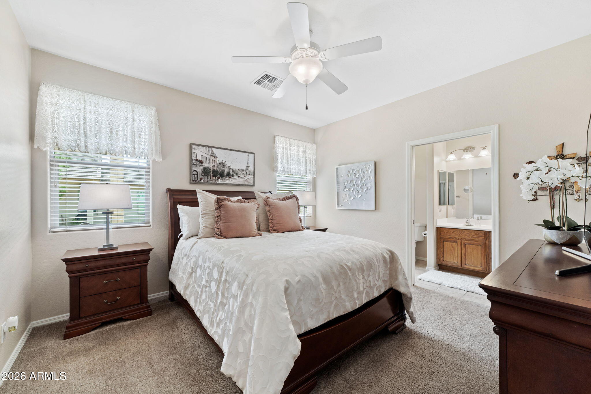 Enjoy Arizona living at its best with both a charming front patio and a covered back patio with an electric remote shade for added comfort and privacy. The north-facing orientation means no home directly in front, offering extra openness and natural light.