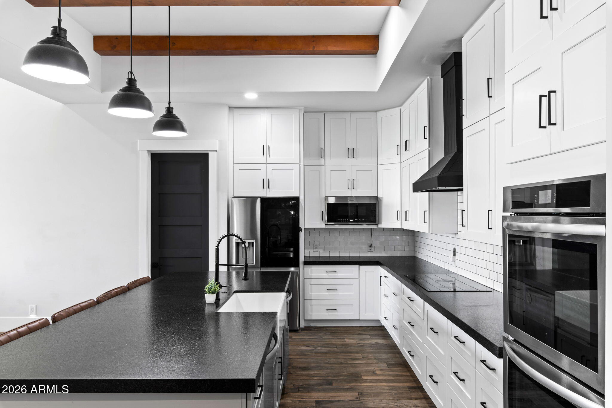 Welcome to an architectural masterpiece in the coveted Santo Vallarta community--designed for energy efficiency, productivity, and an active lifestyle. This 2023-built estate offers 5,093 sq. ft. of thoughtfully planned living space on an expansive 35,799 sq. ft. lot, making it an exceptional opportunity for remote professionals, entrepreneurs, or small business owners. Striking desert-inspired landscaping with turf, a stone walkway, and a rich brick facade with warm wood accents create an inviting first impression. Inside, wood-look ceramic tile, plush bedroom carpeting, upgraded lighting, and custom wooden shutters enhance both comfort and style. At the heart of the home, the gourmet kitchen features stainless steel appliances, two dishwashers, granite countertops, and a massive walk-in pantry with an additional refrigeratorideal for entertaining or business-scale use. Oversized sliding doors open to a spacious backyard with turf and desert landscaping, offering seamless indoor-outdoor living. This home was intentionally designed for work-from-home and small business flexibility, featuring multiple dedicated office spaces, including two full home offices, a private office within the primary suite, a flex salon or studio space, a separate TV/game room, a dedicated exercise room, and a workshop with added garage storageproviding true separation between work, living, and leisure.