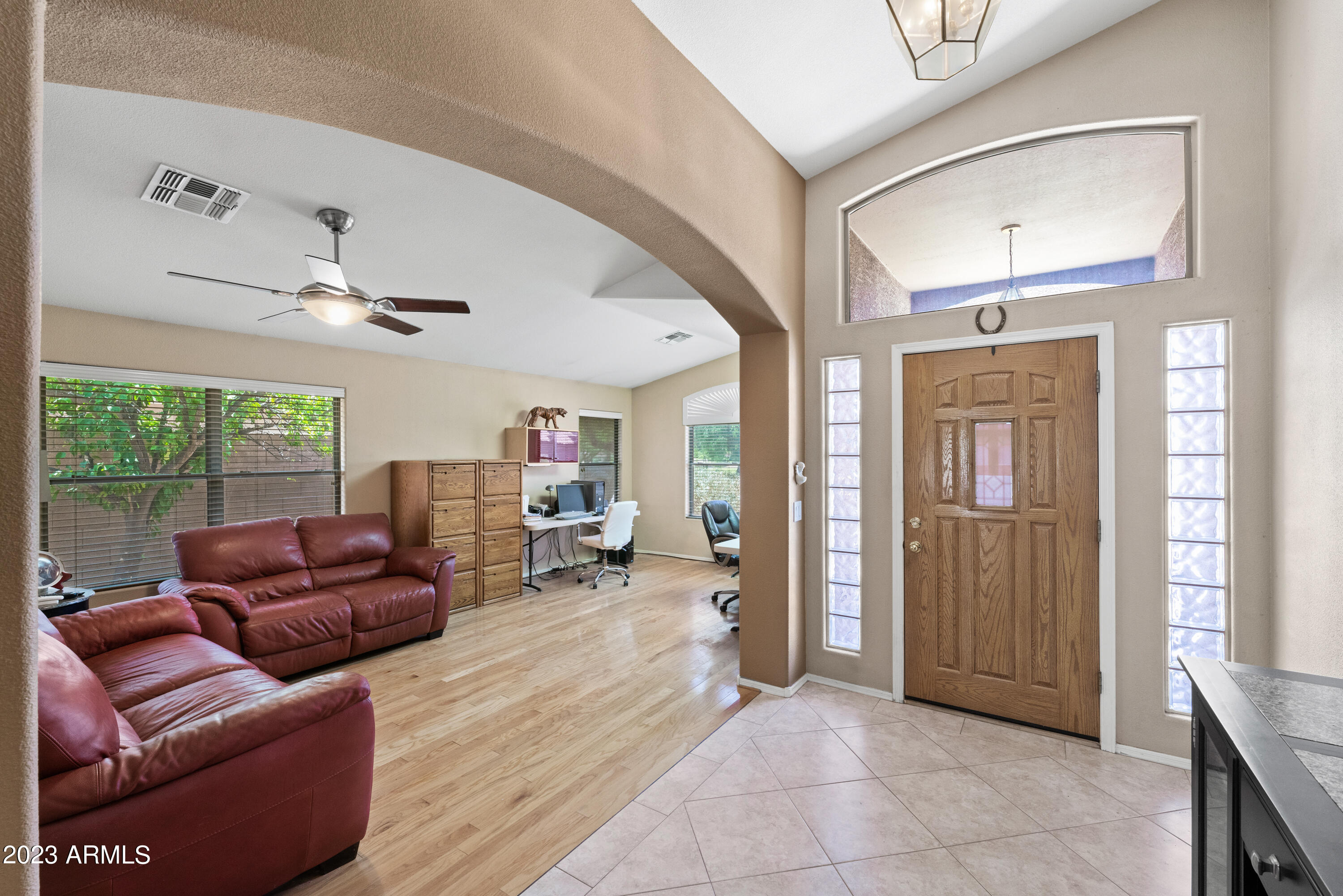 Welcome to this charming home that offers an array of desirable features and a delightful neighborhood setting. Step inside to discover vaulted ceilings that create an open and airy atmosphere, setting the stage for a warm and inviting living experience. This residence boasts ample interior storage, ensuring that you'll have plenty of space to neatly organize your belongings. Gather around the gas fireplace, adding a cozy touch to those chilly evenings. The home is in the singles level phase of the sub with no 2-stories behind for privacy. It has 10-foot side yard setbacks. Additionally, the living room could be used as a large home office. Conveniently located near the 202 and 60 freeways, this home offers easy access for commuting and exploring the surrounding areas. Shopping centers are within close proximity, making errands a breeze. The community park, with its basketball court and other amenities, provides a great place for outdoor recreation. The highly regarded Gilbert School System ensures excellent educational opportunities. Enjoy a south-facing house that welcomes an abundance of natural light, while the quiet neighborhood provides a serene and tranquil environment. The longstanding presence of friendly neighbors fosters a strong sense of community and belonging.