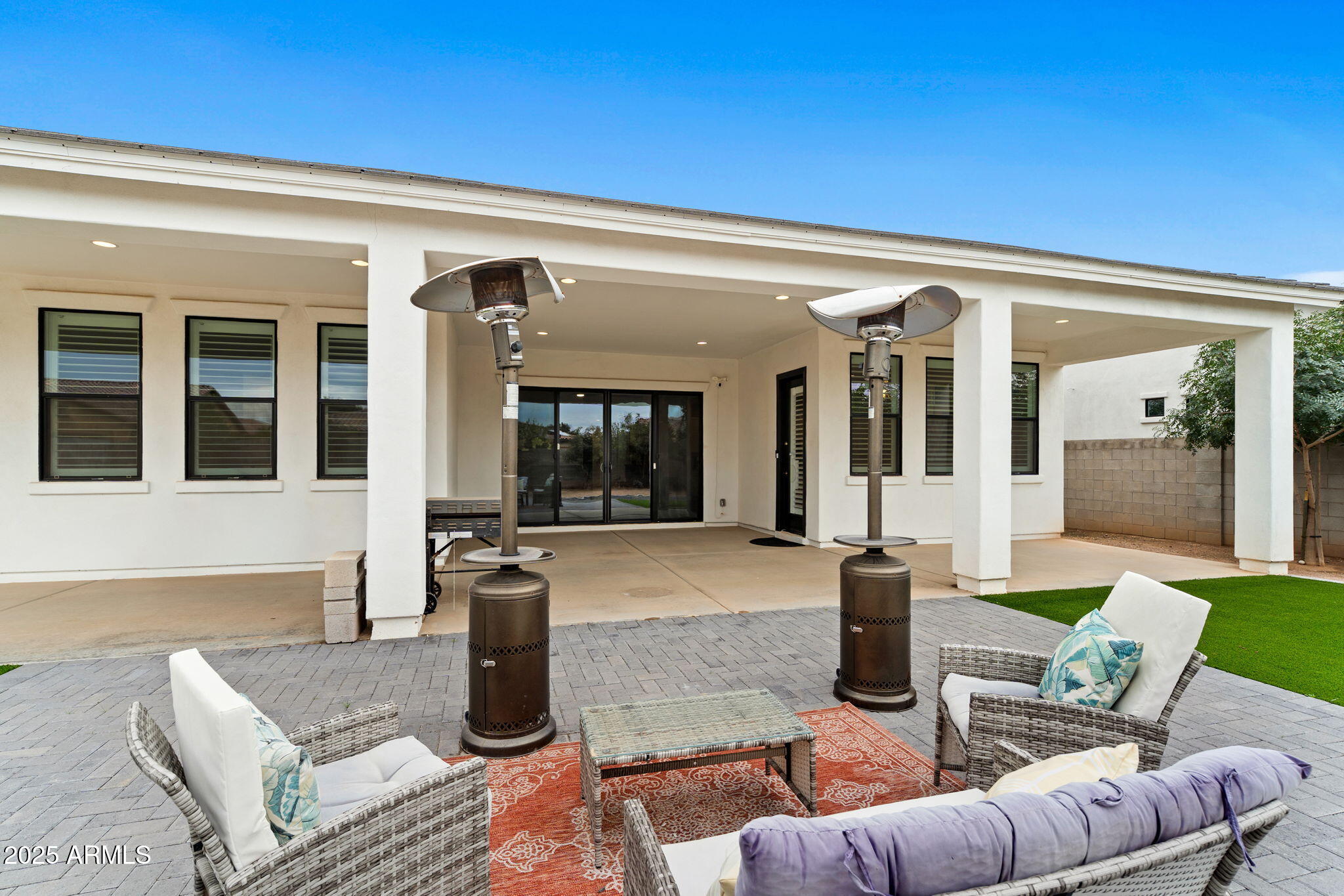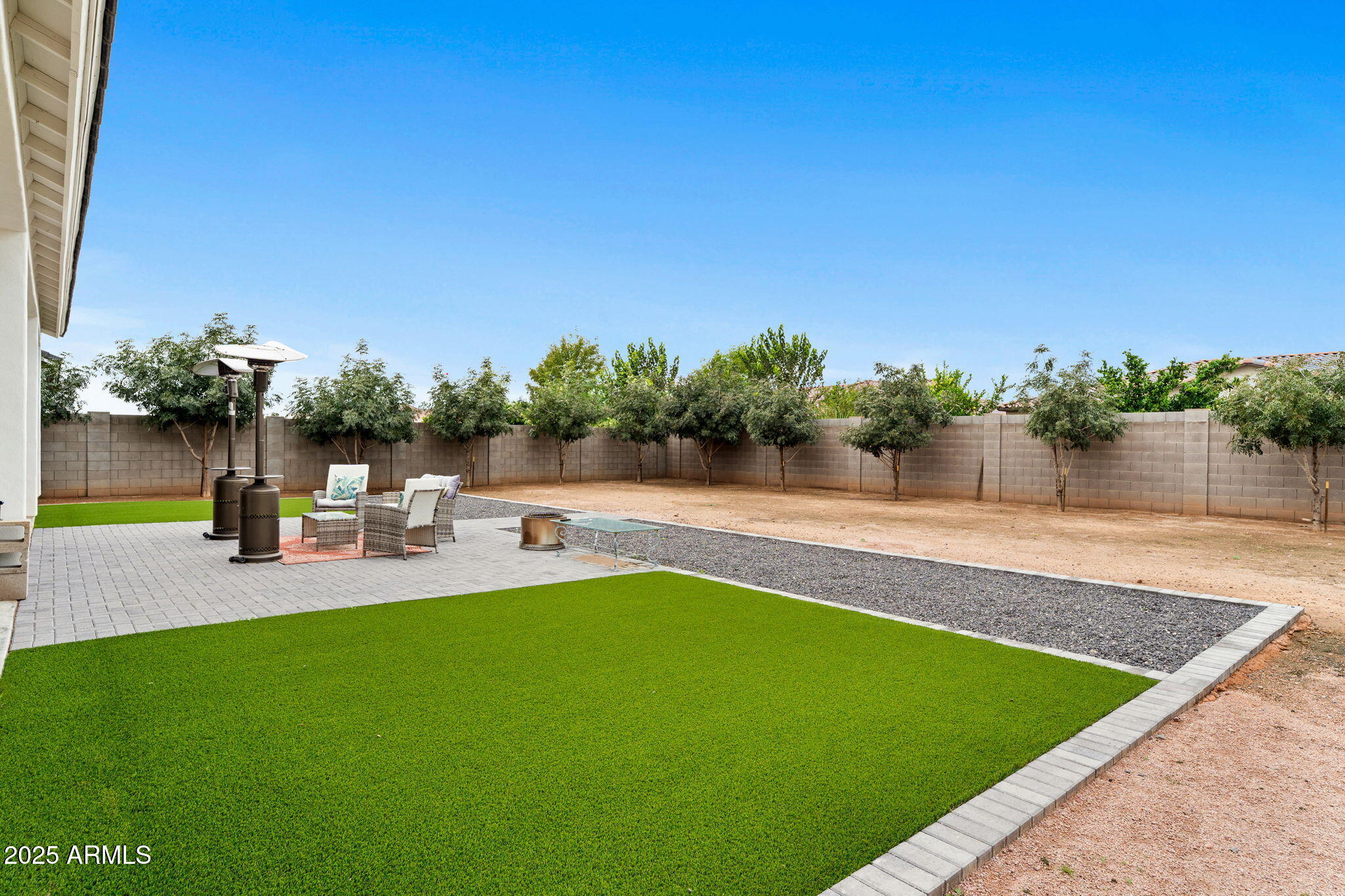ASSUMABLE 4.75% INTEREST RATE, less than $100,000 down payment to ASSUME! Luxury, comfort, and contemporary style come together beautifully in this stunning single-level 4 bedroom, 3 bath home with bonus room/den, tucked quietly at the end of a cul-de-sac in the sought-after San Tan Meadows community. 5 CAR GARAGE, built in 2021 and set on an impressive .33-acre homesite, this residence delivers the space, privacy, and sophistication discerning buyers expect at this level. The spacious great room flows effortlessly into the gourmet kitchen and dining areas, perfect for everyday living and effortless entertaining. A separate den offers the flexibility of a home office, media room, or play space. A charming courtyard entry welcomes you inside, where plank tile flooring, plantation shutters, and thoughtful design create a warm yet elevated ambiance. Relax or entertain under the covered patio while taking in the serenity of this expansive backyard retreat. Additional highlights include a 5-car garage, RV parking pad, dog run with laundry-room dog door access, and extra attic insulation added last year. Outdoors, enjoy beautifully designed, desert-friendly landscaping with low-maintenance turf, and pavers.