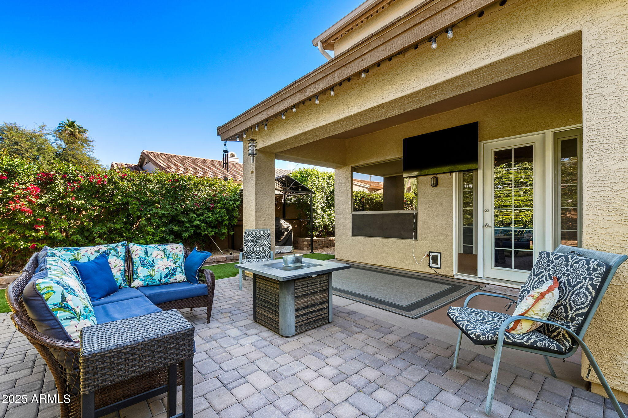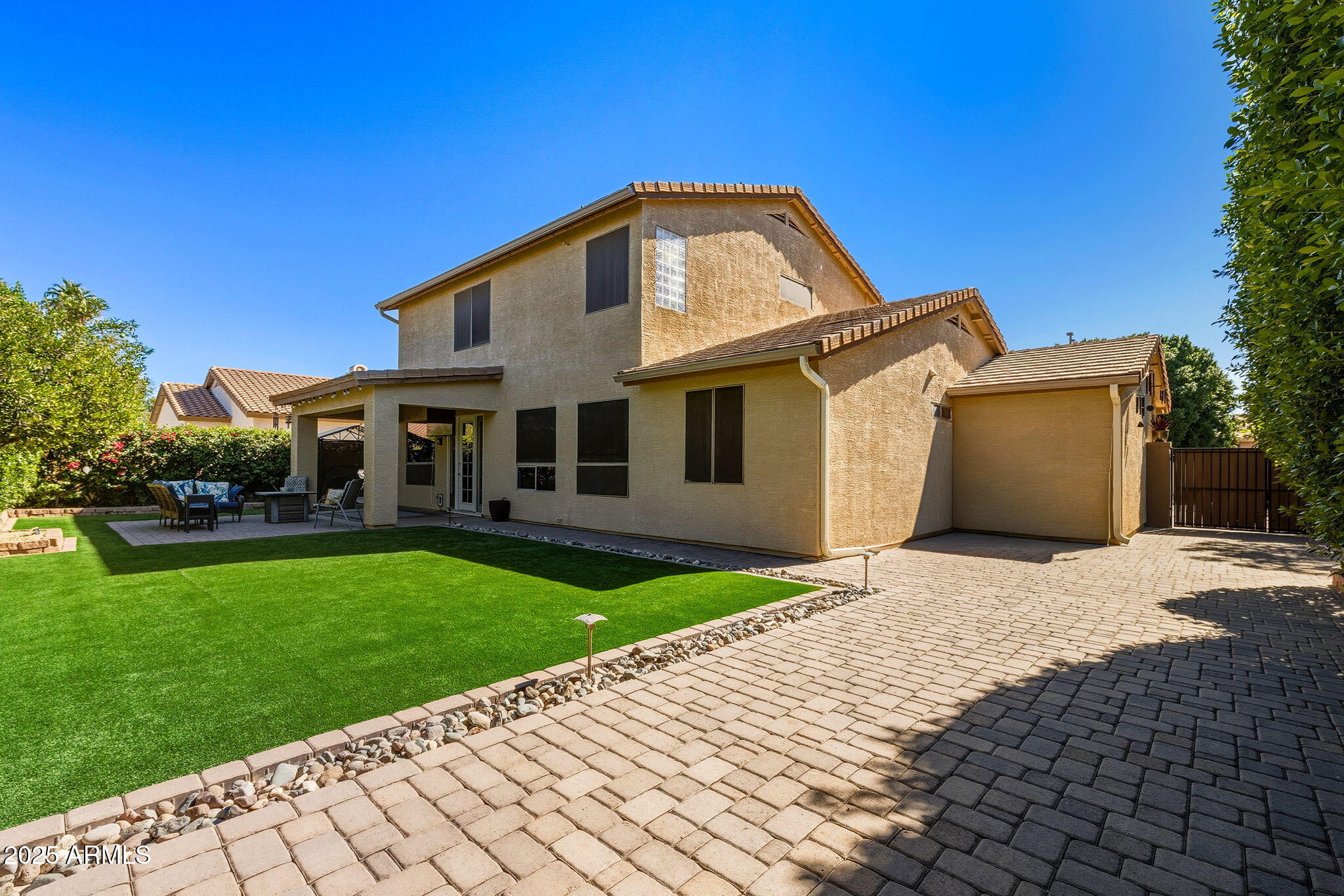 Outside, your backyard sanctuary awaits. Designed for relaxation and entertaining, it boasts lush turf in front and back, landscape lighting throughout, privacy ficus lining the property, and raised garden beds complete with lighting and drip irrigation. Every plant and detail has been carefully curated to create a resort-style escape that's peaceful, private, and low maintenance.
