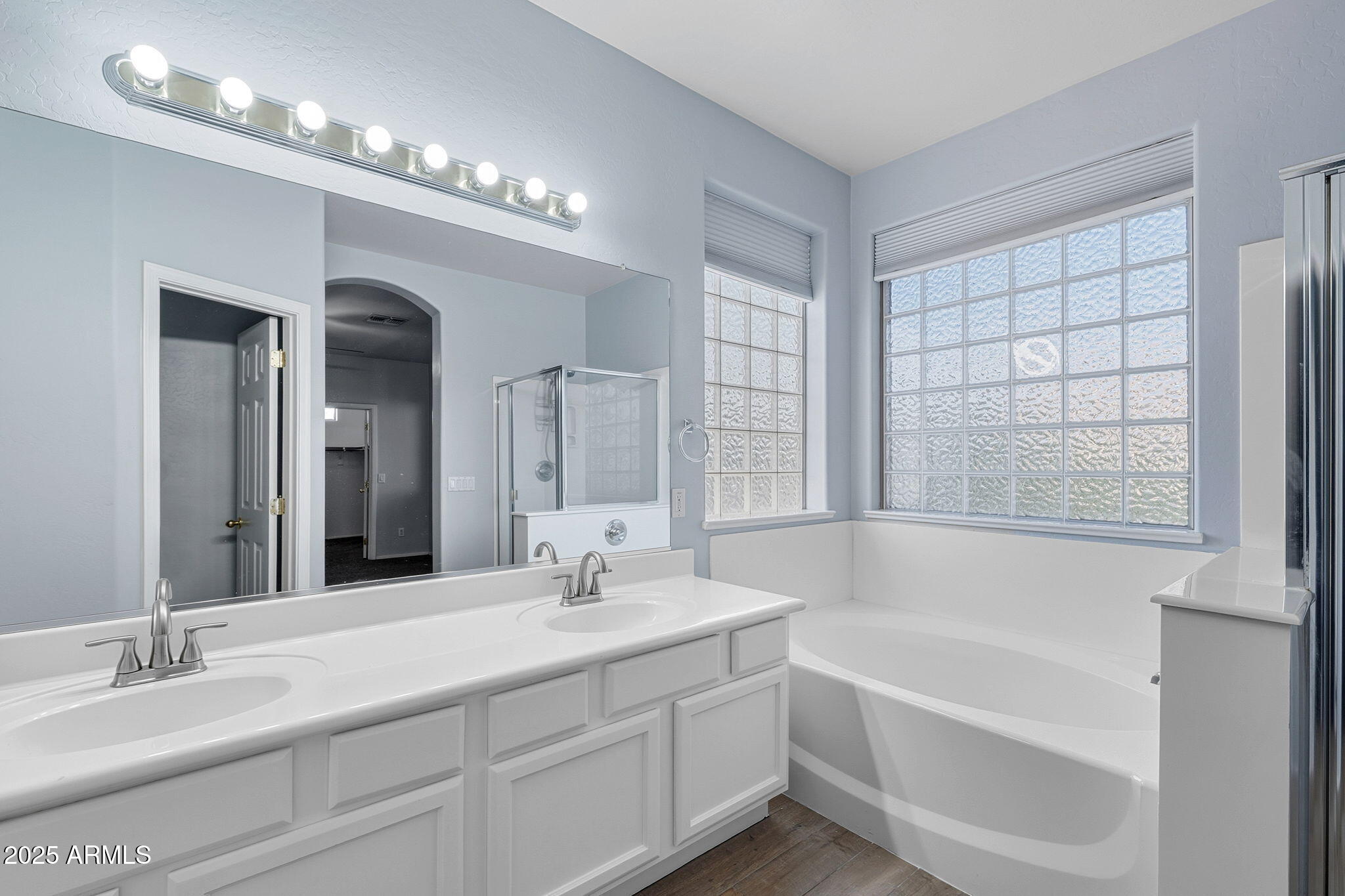 Welcome to your private retreat in the highly sought-after community of Ashland Ranch -- where luxury upgrades meet everyday comfort. This beautifully updated 5-bedroom plus a huge bonus den, 3-bath 4 car garage home has been meticulously cared for and thoughtfully enhanced inside and out. 2 brand new AC units with transferable warranties. Step through the paver-lined walkway (which extends from front to back through the RV gate) and into a home that feels brand new. The downstairs features new porcelain tile throughout, a remodeled bedroom and bath, and a gorgeous kitchen with quartz countertops, an undermount sink, and modern faucet -- all completed within the past year. A carbon filter water softener system (installed just a year ago) provides filtered water to both the kitchen and a garage fridge with ice line for ultimate convenience. Upstairs, you'll find the same stunning porcelain tile carried into the bathrooms, along with new waterlines, fittings, and a remodeled shower. The primary suite features updated flooring, new toilet, faucets, and plumbing fixtures, creating a spa-like experience at home.