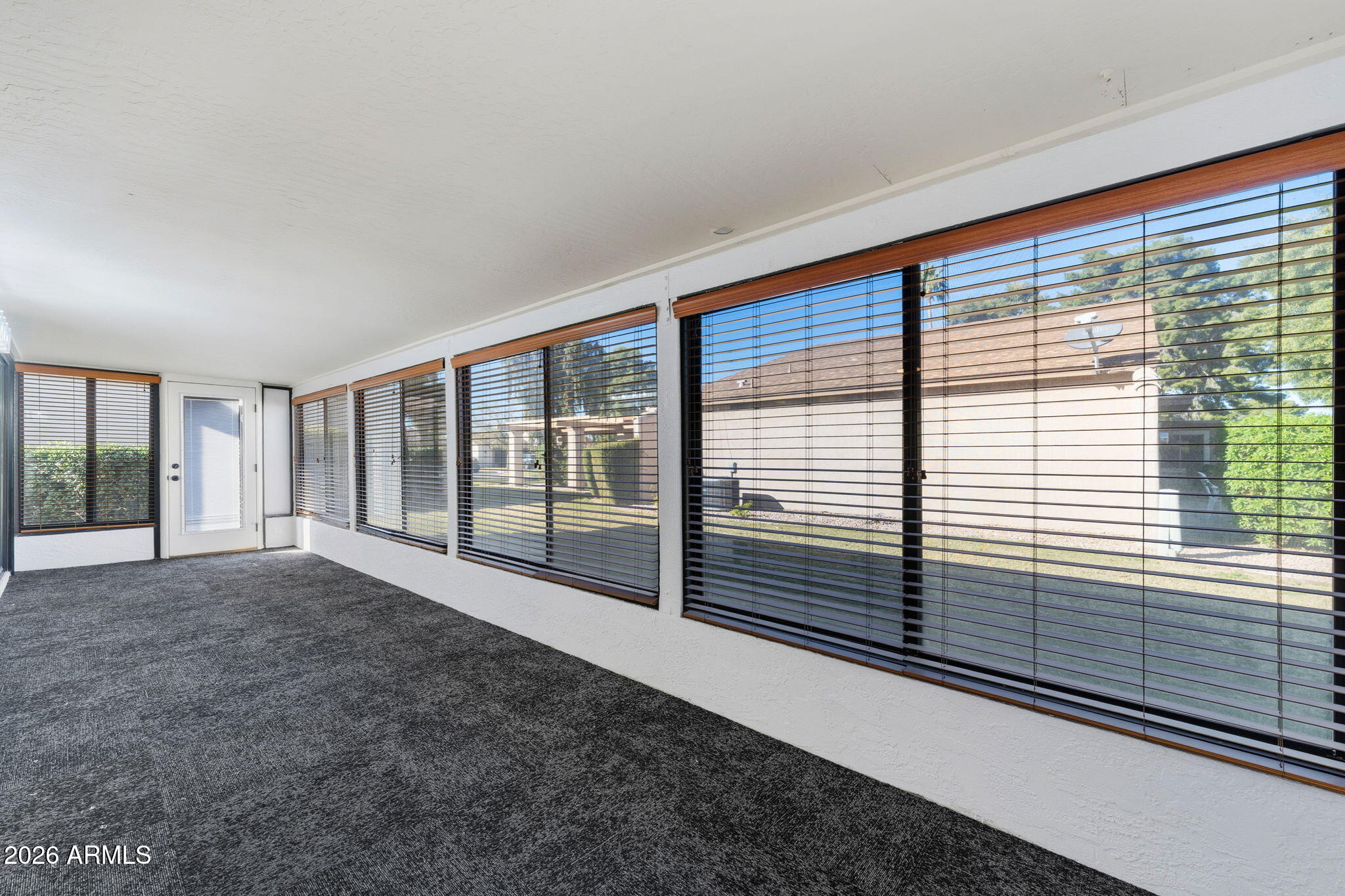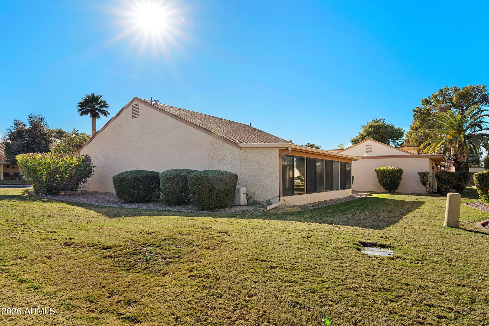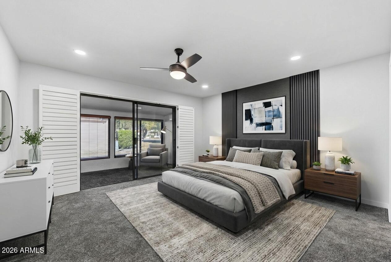 Ideally situated on a corner lot, this stunning home has undergone an approximate $50,000 renovation and is truly move-in ready. Thoughtful upgrades shine throughout, including LVP flooring and carpet, plantation shutters, and beautifully upgraded bathrooms. The primary suite is a standout, featuring a double vanity, two closets with built-in shelving, a stylish accent wall, and direct access to the Arizona room. The Arizona room, complete with its own AC unit, is filled with windows and blinds, creating a bright and versatile space to relax or entertain year-round. The kitchen offers stainless steel appliances and a large window that floods the space with natural light, while the living room includes built-in shelving for both style and function. Additional highlights include a one-car oversized garage and charming citrus trees in the front yard, adding to the home's curb appeal.