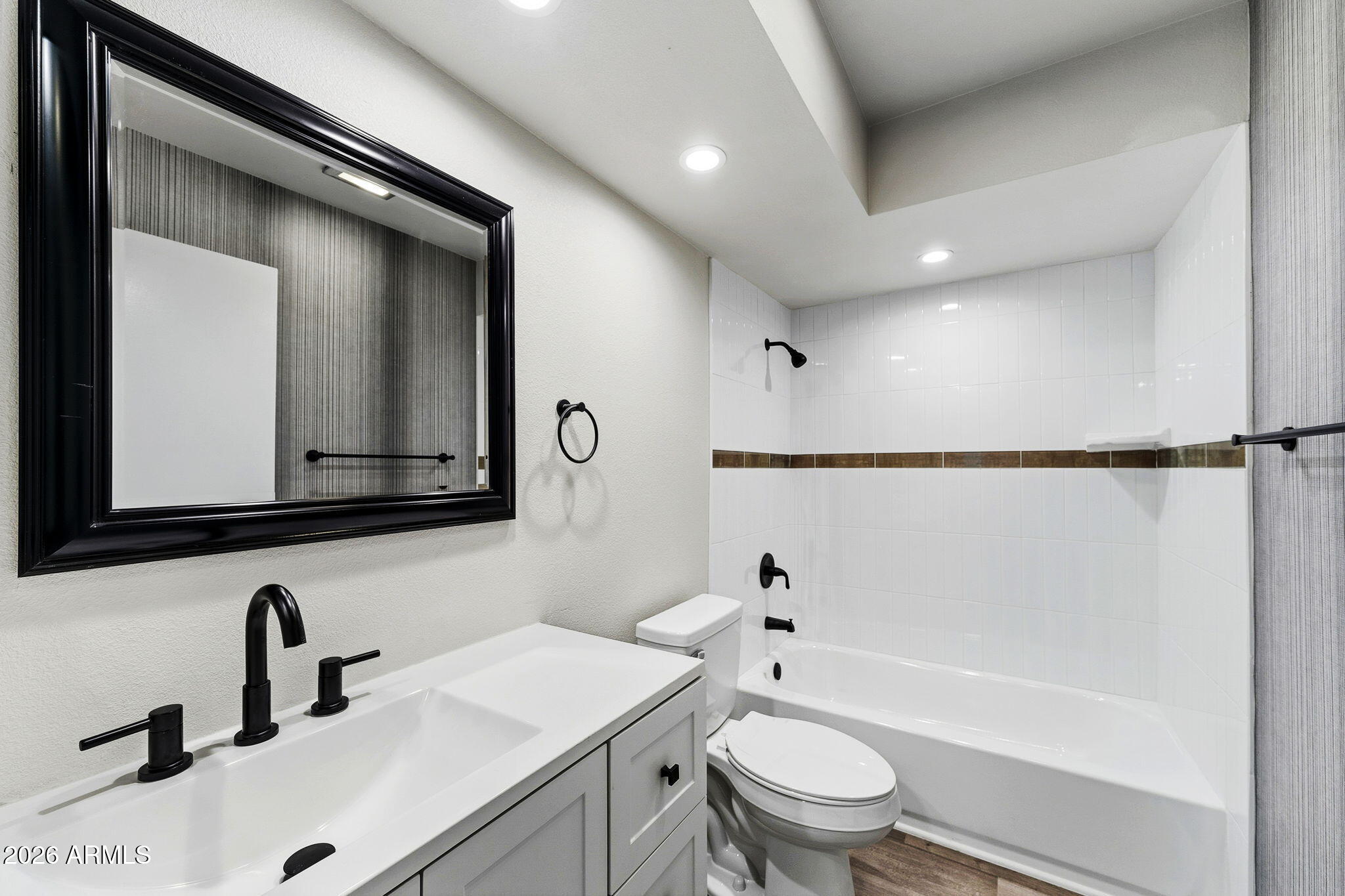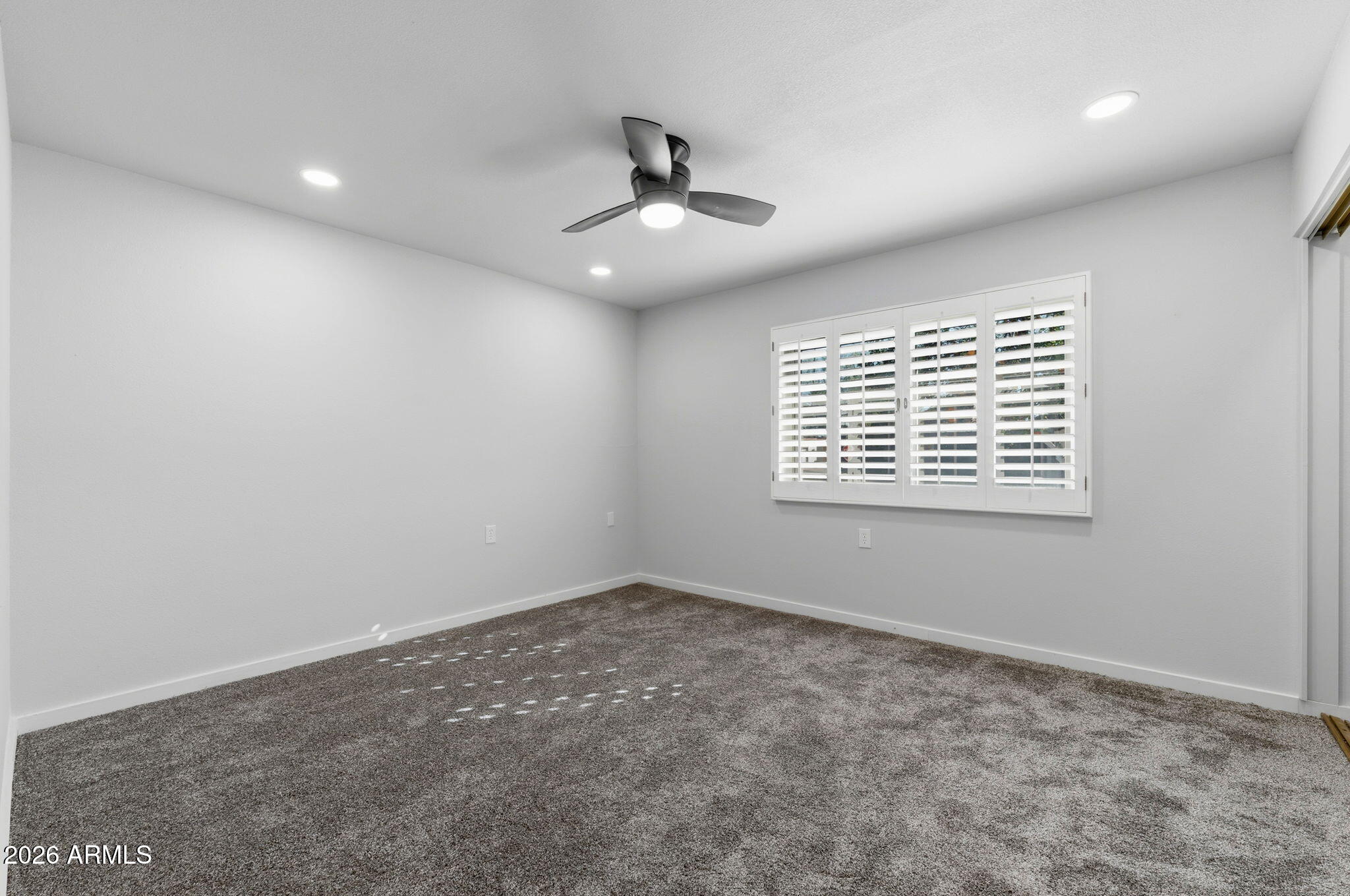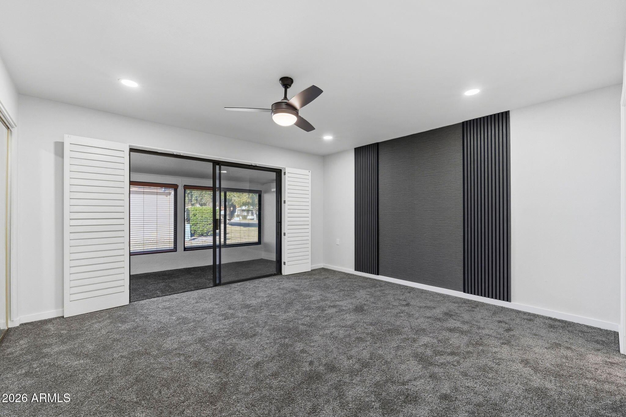 Ideally situated on a corner lot, this stunning home has undergone an approximate $50,000 renovation and is truly move-in ready. Thoughtful upgrades shine throughout, including LVP flooring and carpet, plantation shutters, and beautifully upgraded bathrooms. The primary suite is a standout, featuring a double vanity, two closets with built-in shelving, a stylish accent wall, and direct access to the Arizona room. The Arizona room, complete with its own AC unit, is filled with windows and blinds, creating a bright and versatile space to relax or entertain year-round. The kitchen offers stainless steel appliances and a large window that floods the space with natural light, while the living room includes built-in shelving for both style and function. Additional highlights include a one-car oversized garage and charming citrus trees in the front yard, adding to the home's curb appeal.