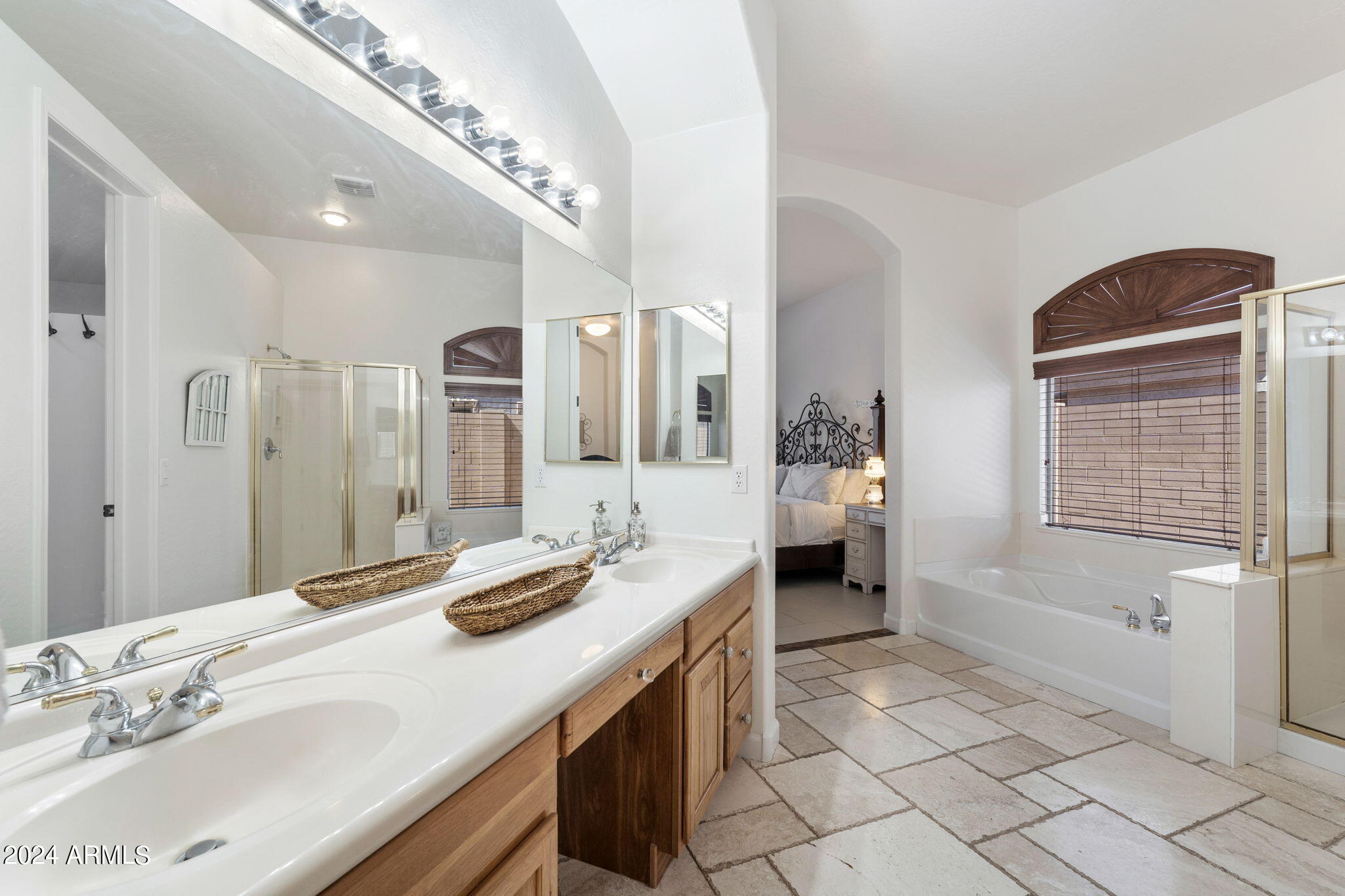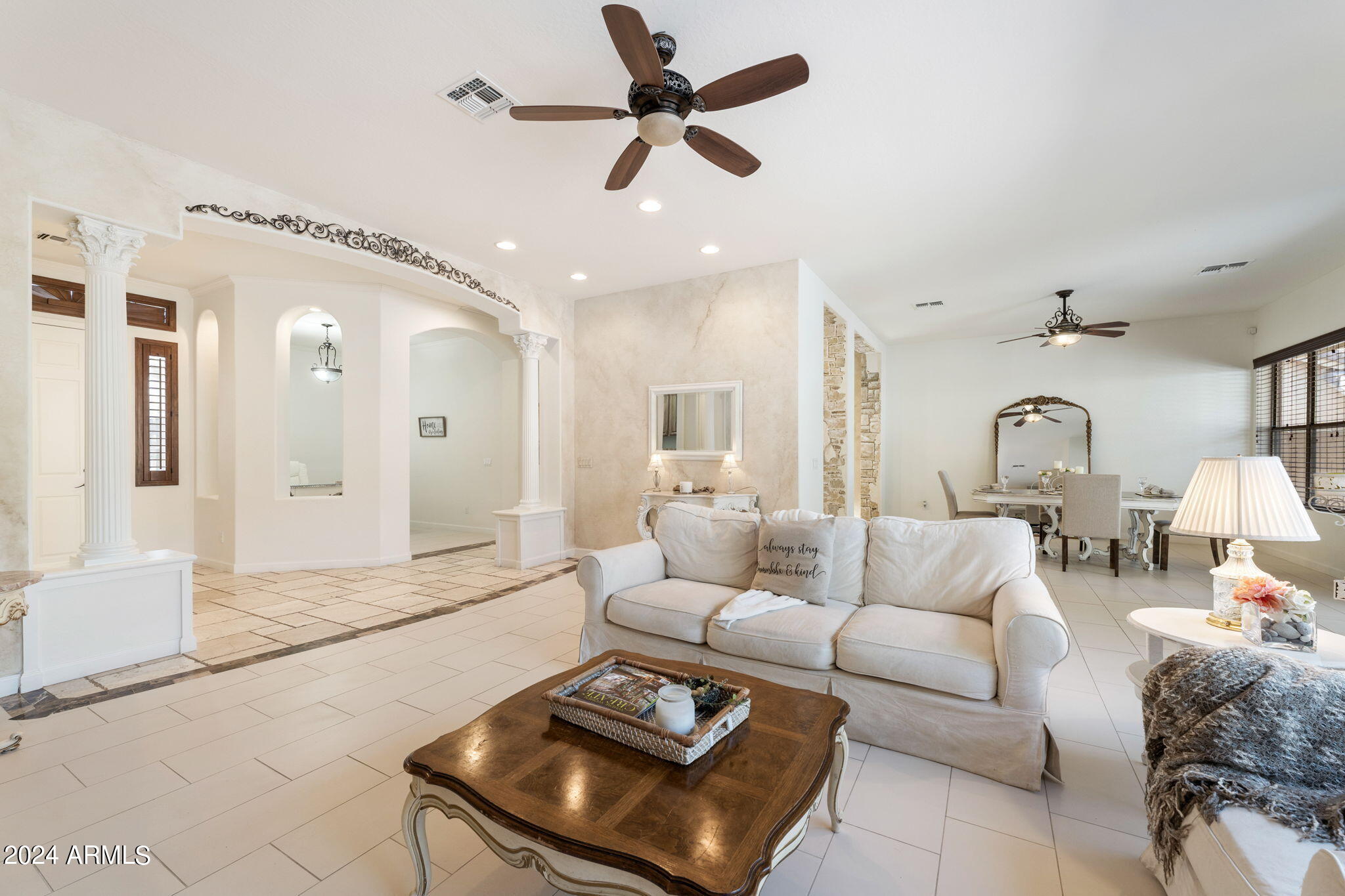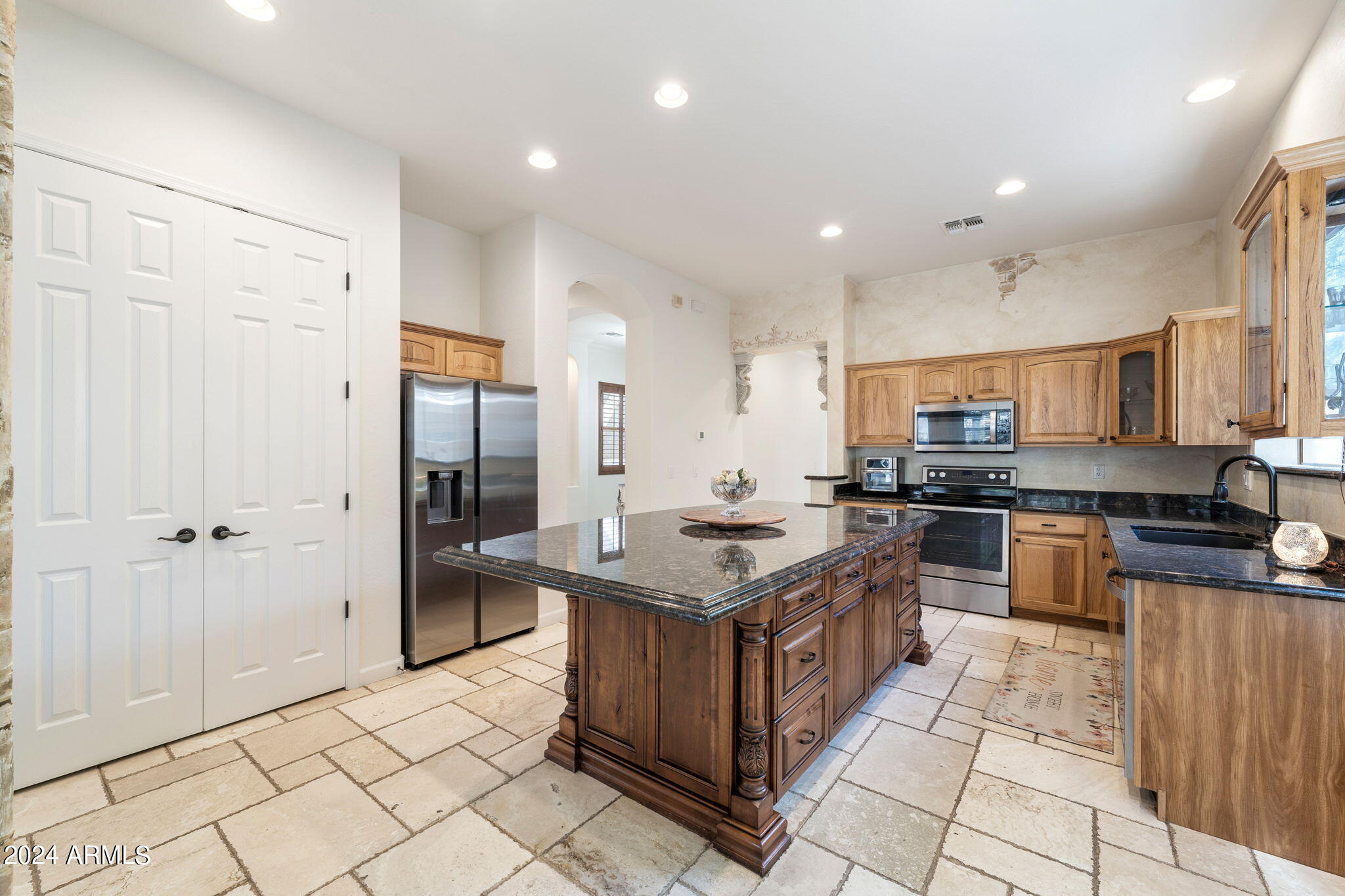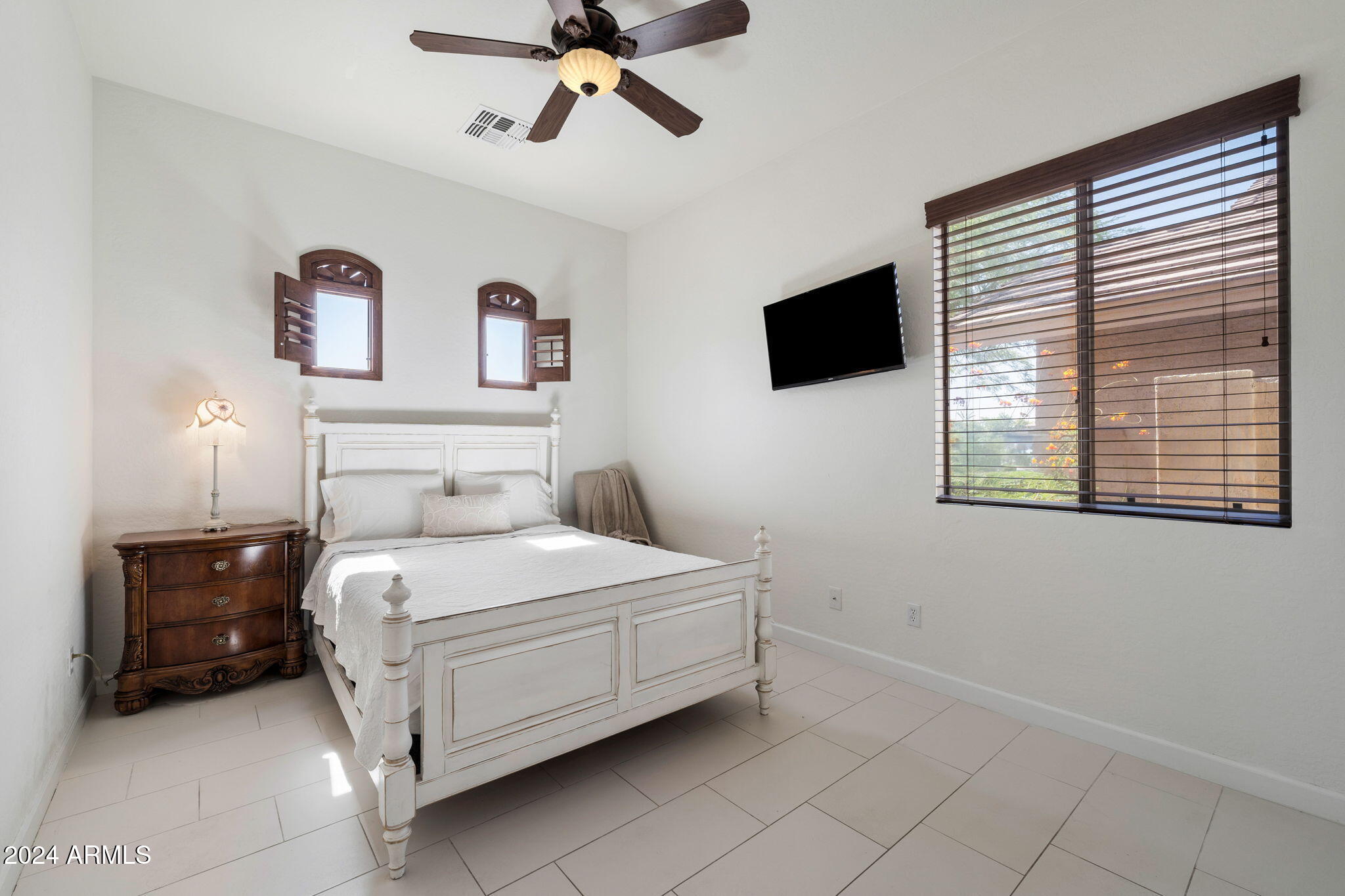 Welcome to this stunning 3-bedroom, 2-bathroom home where modern elegance meets functional living. Step inside to find beautiful tile flooring throughout, a sleek kitchen with granite countertops, and stainless steel appliances that make cooking a joy. The spacious master suite boasts a large walk-in closet, while the second bathroom features double sinks for added convenience. A bonus room off the entryway is perfect for a home office or creative space. Outside, the backyard is an entertainer's dream with a paver patio, gas outdoor fireplace, and a built-in cooking area. Enjoy low-maintenance desert landscaping including a beautiful Taiwan plant, plus an installed alarm system for peace of mind.
