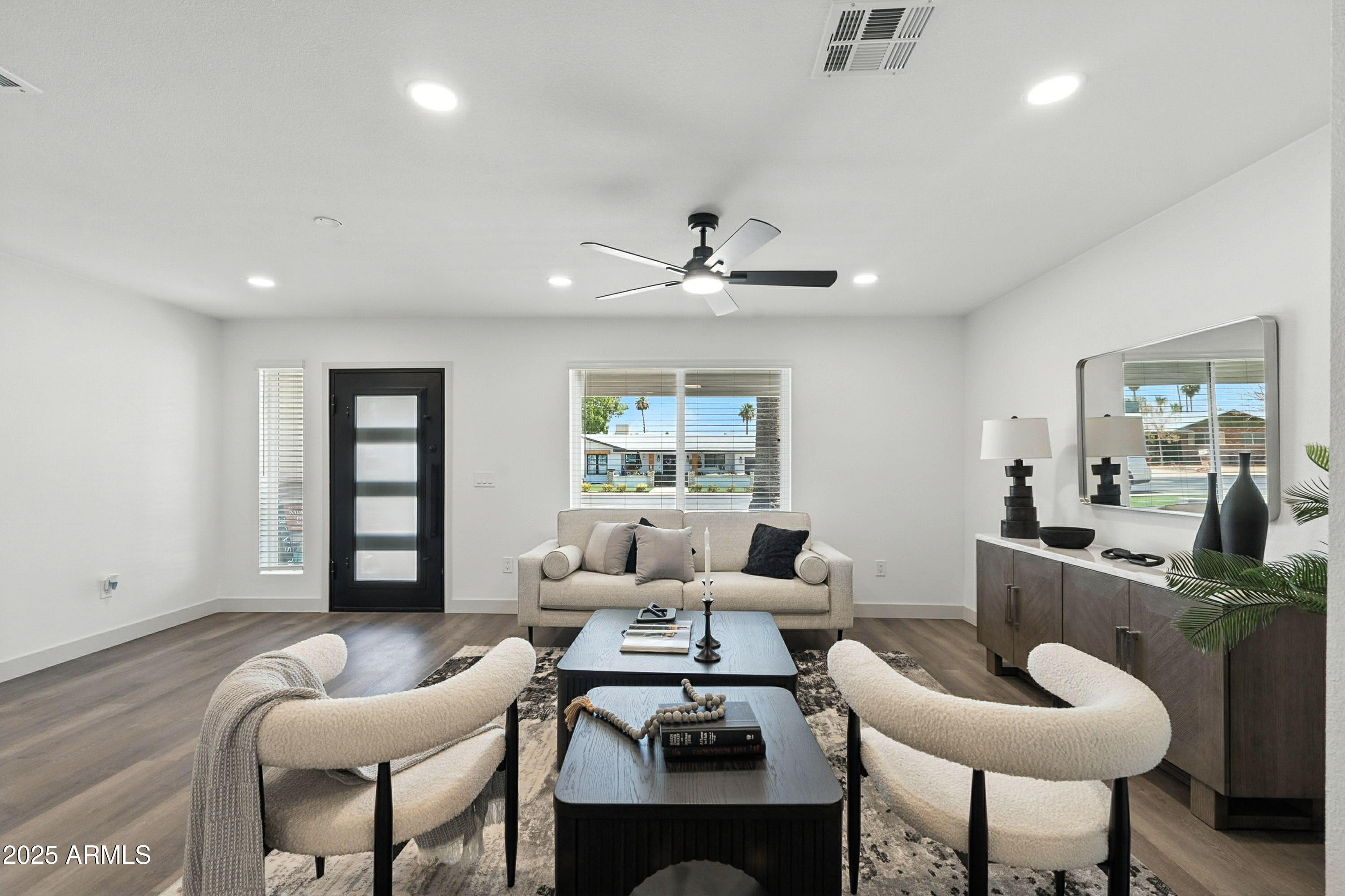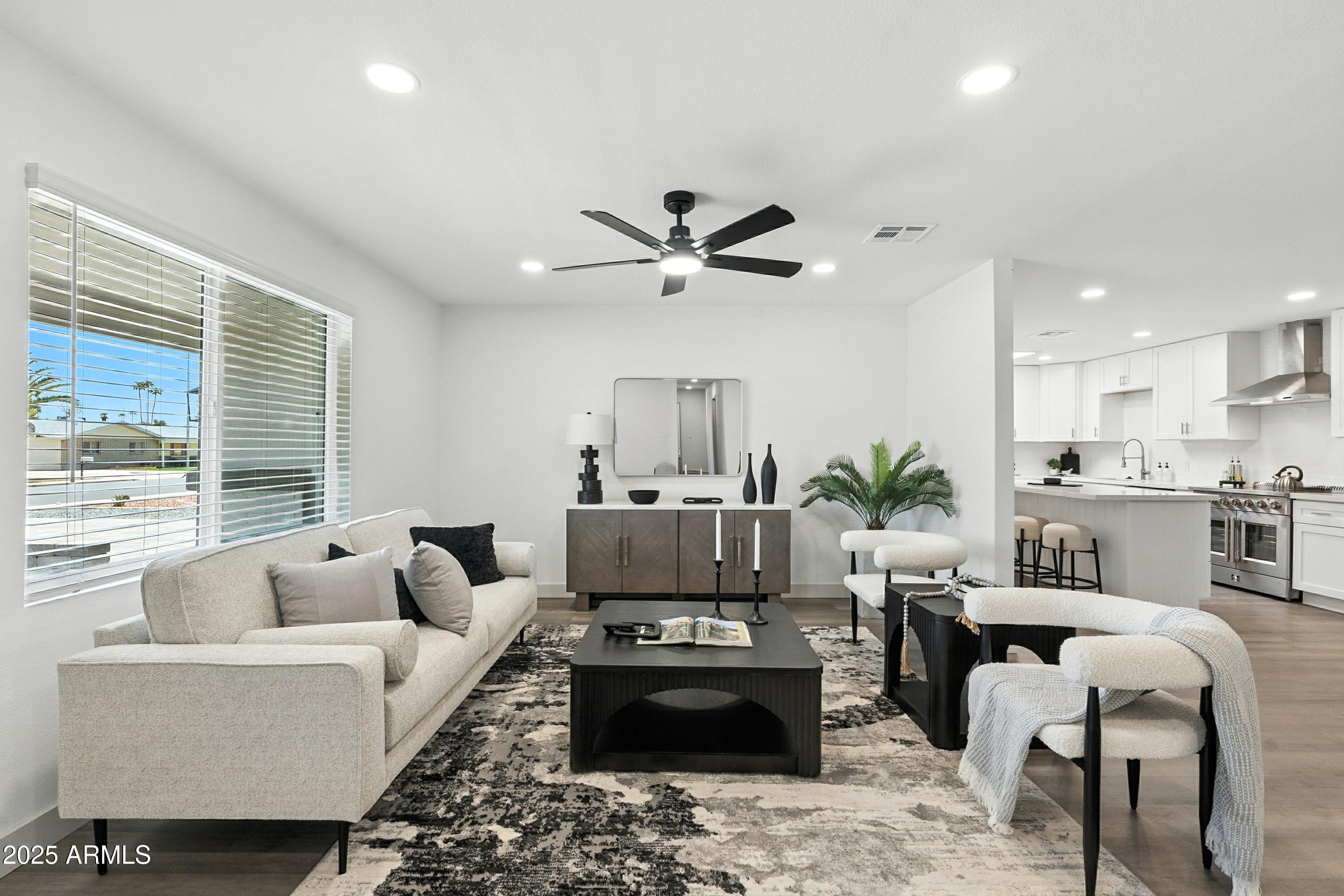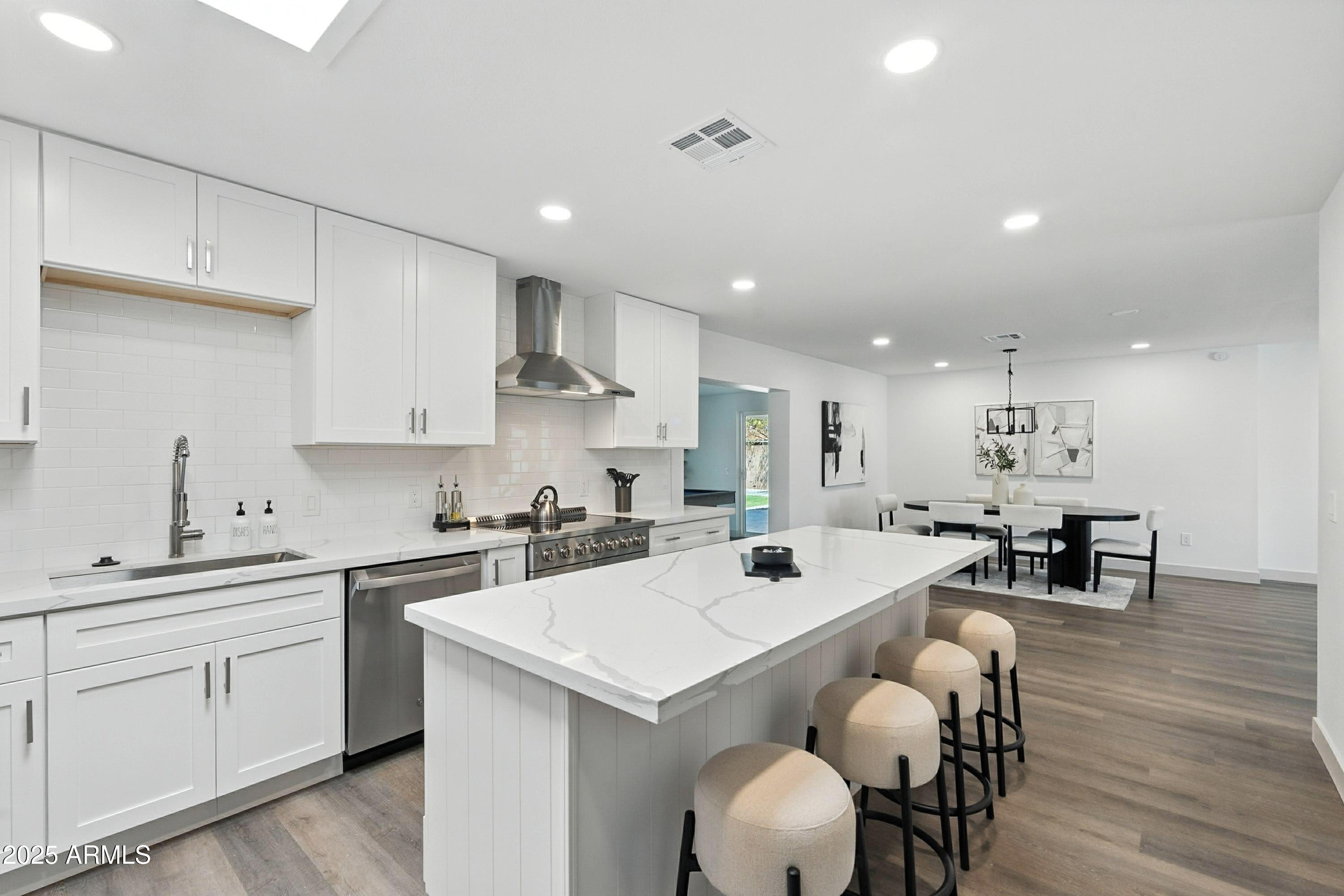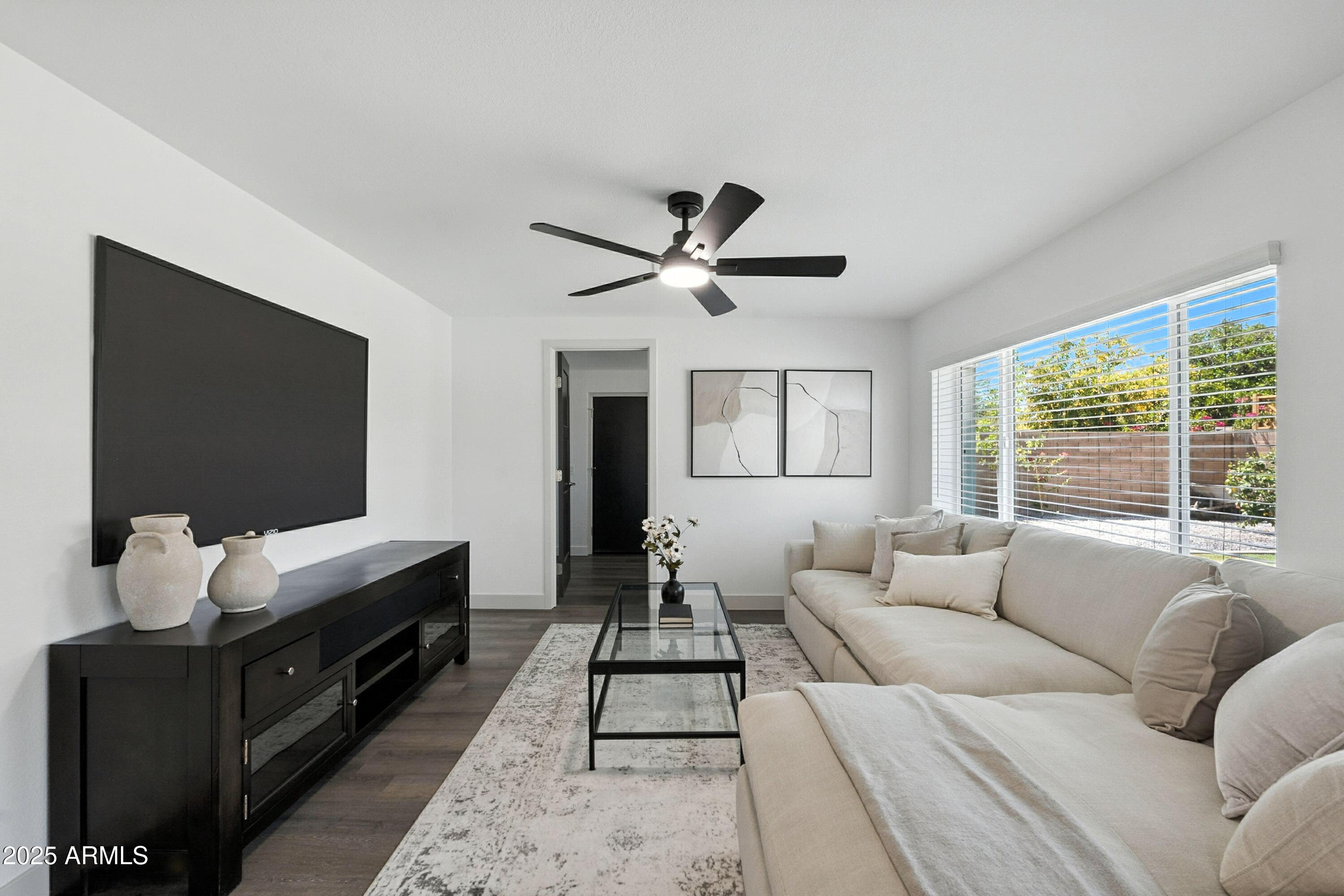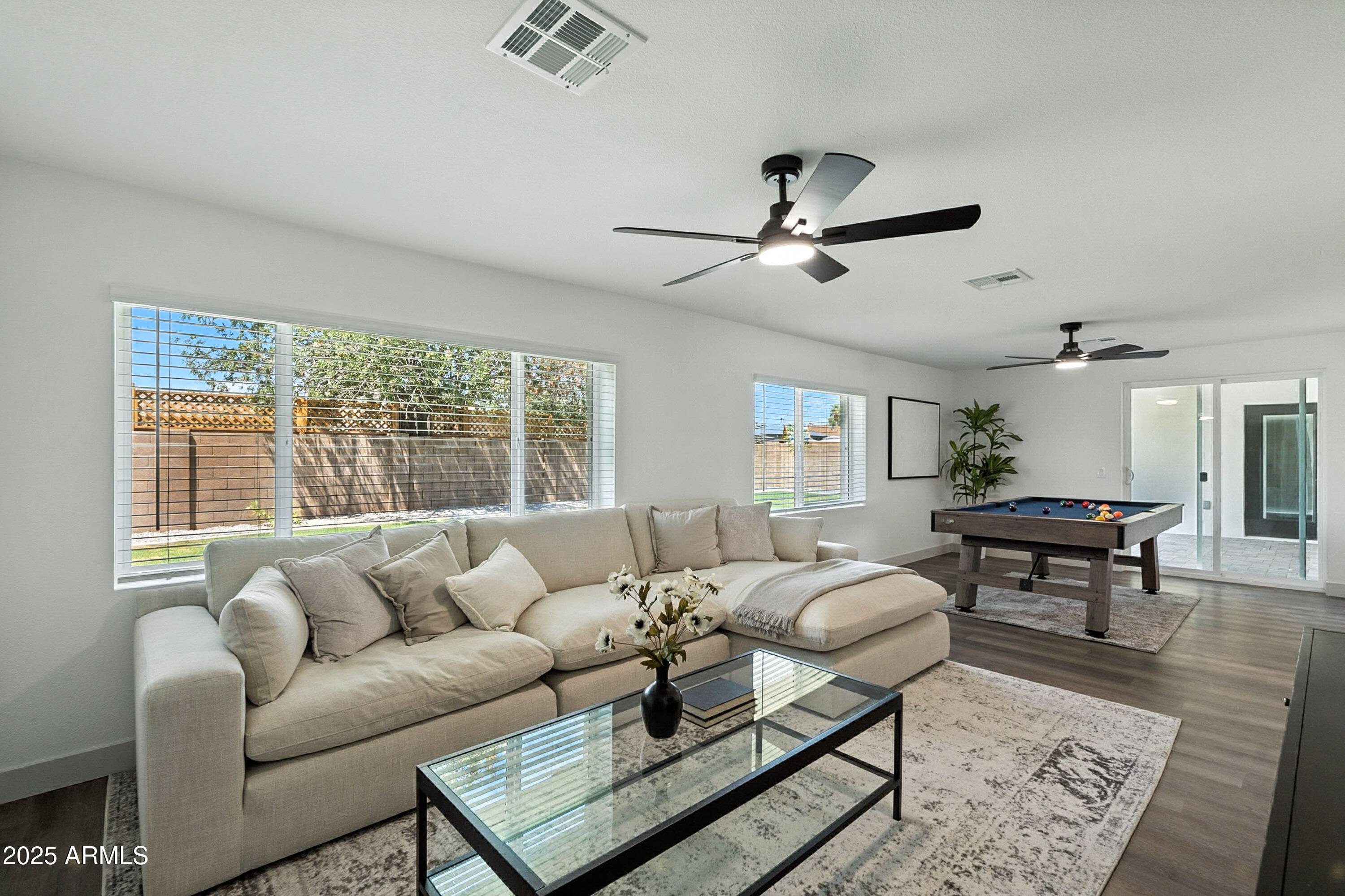 Discover this stunning single-story home featuring 4 spacious bedrooms and 2 modern bathrooms. The open floor plan boasts durable vinyl flooring, a bright kitchen with white cabinets, sleek quartz countertops, stainless steel appliances, and ample storage. Relax on the inviting front porch or entertain on the covered patio overlooking the fenced backyard. A 2-car garage and extended driveway provide plenty of parking and convenience. This home combines style, comfort, and functionality, making it perfect for everyday living and entertaining. Don't miss the chance to make this beautifully designed property your new home!
