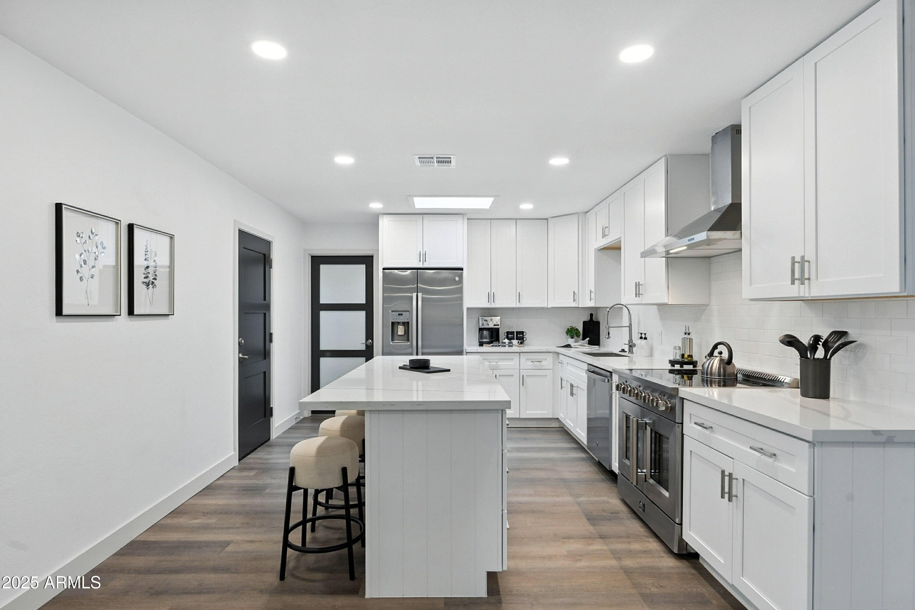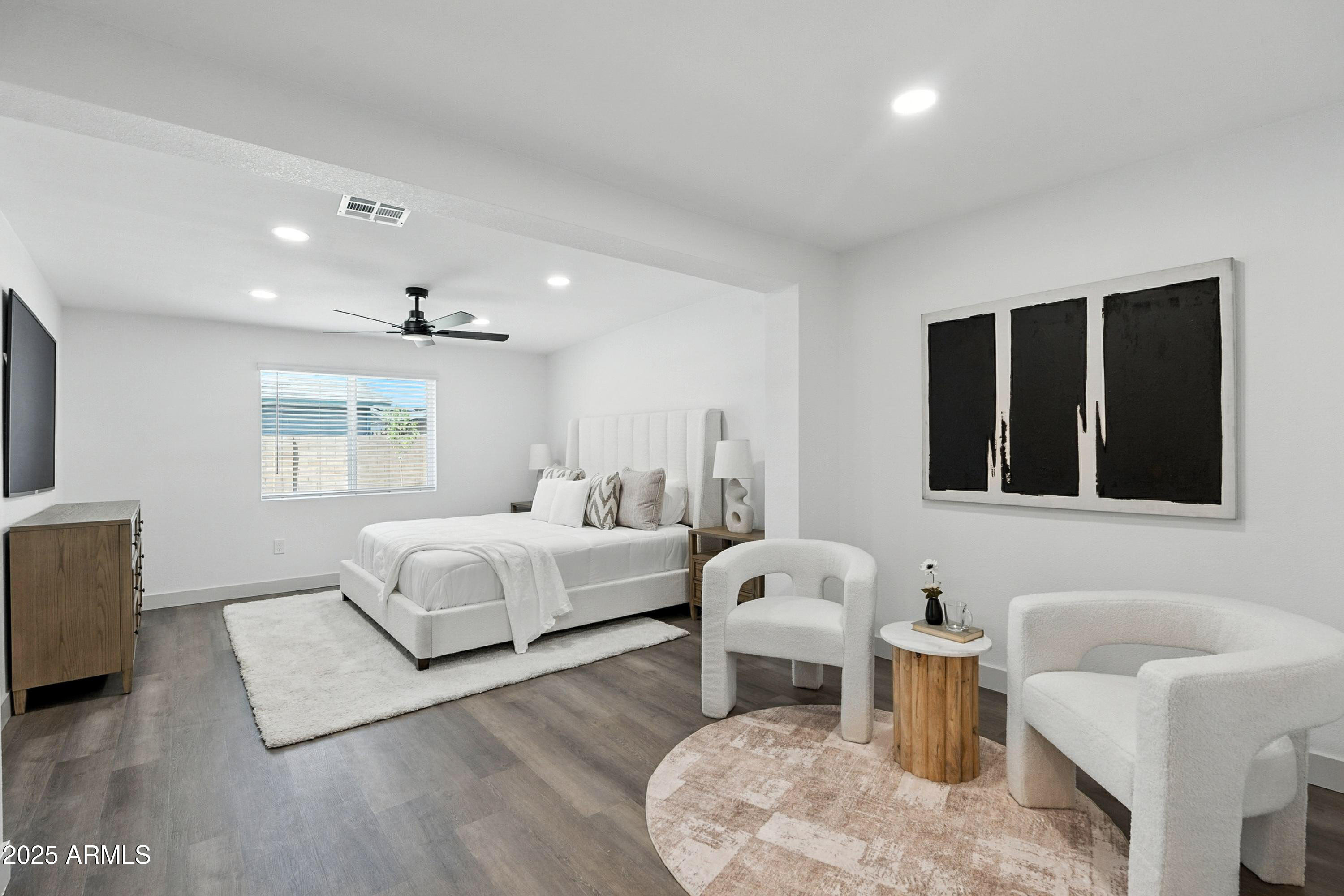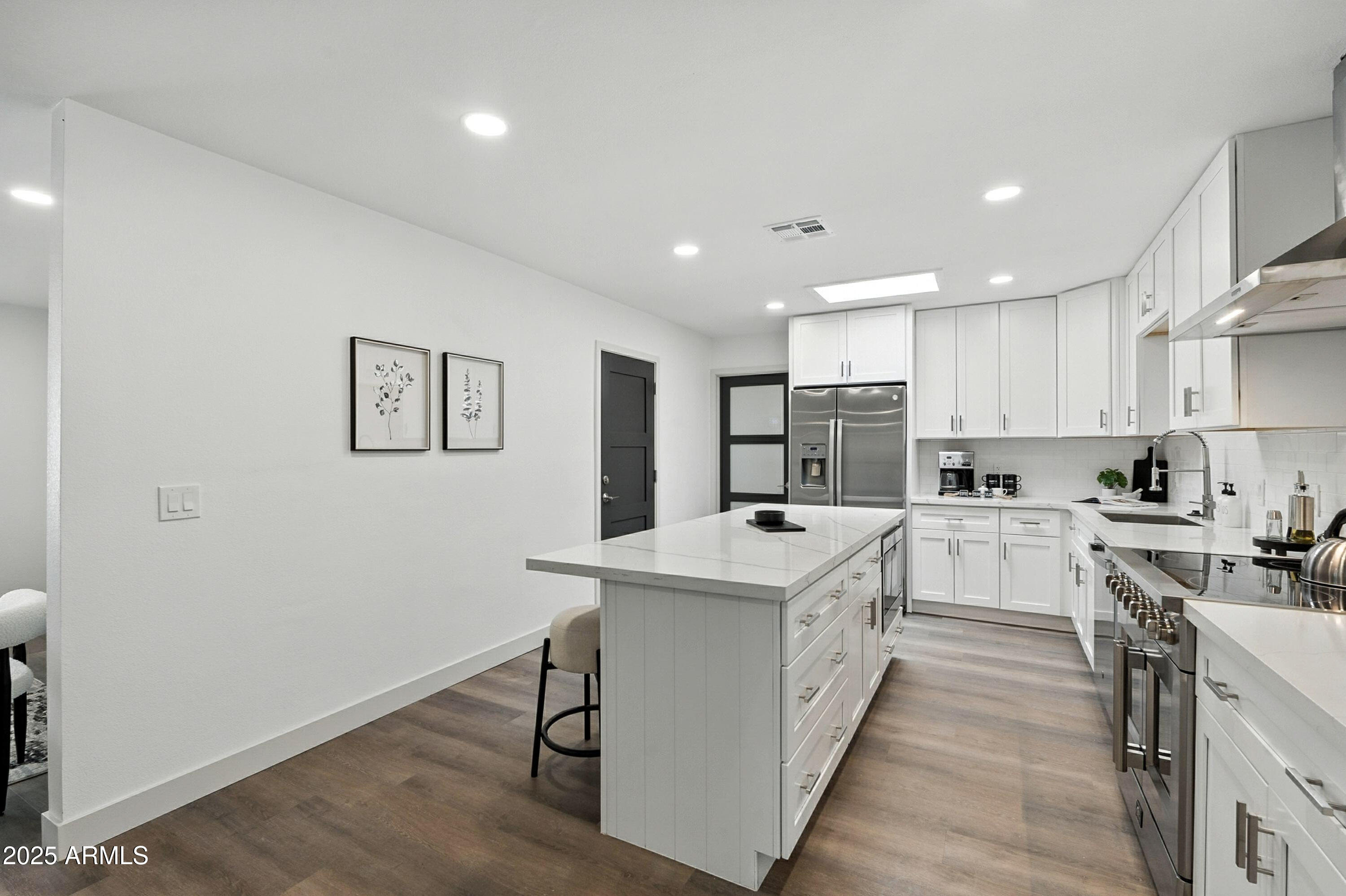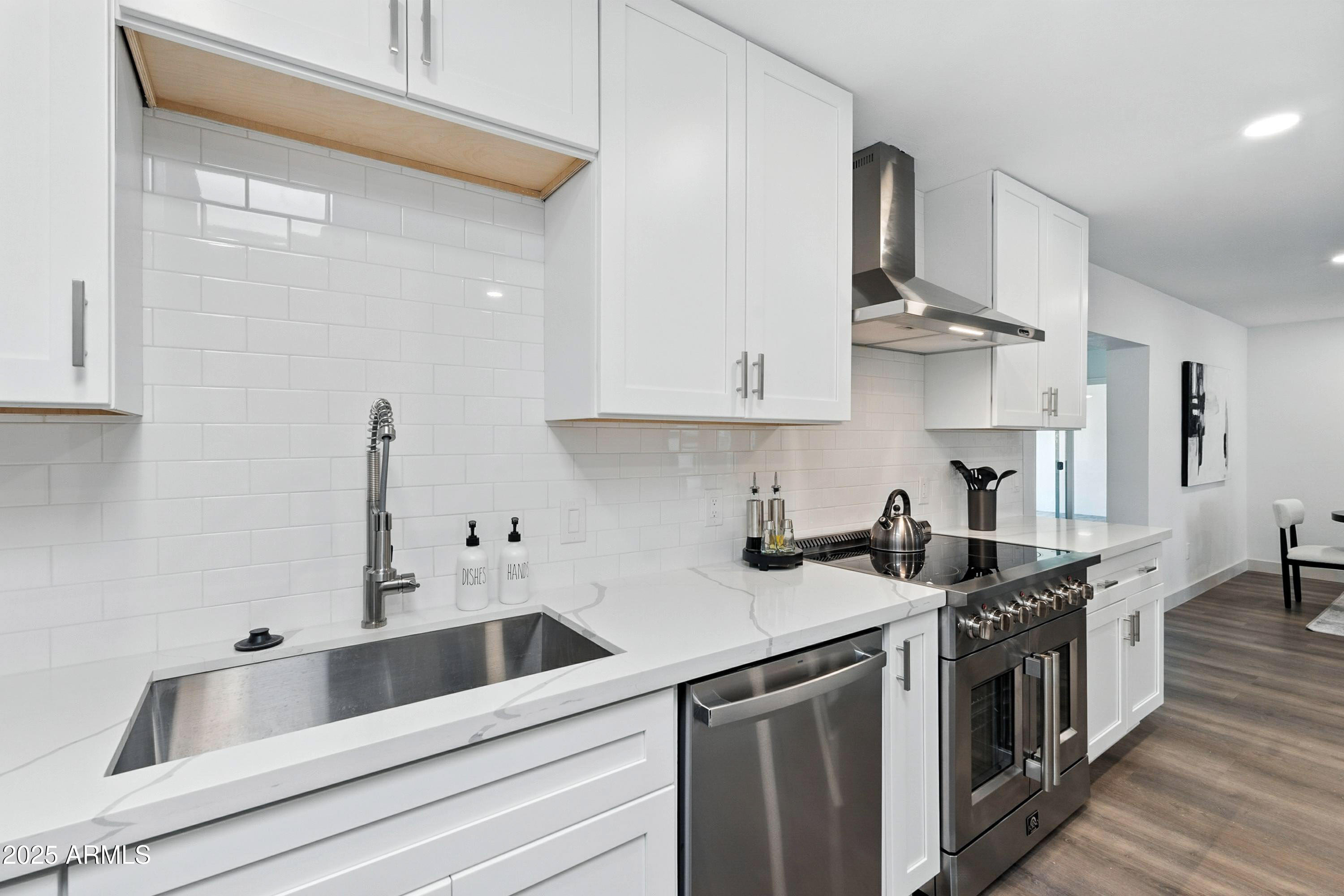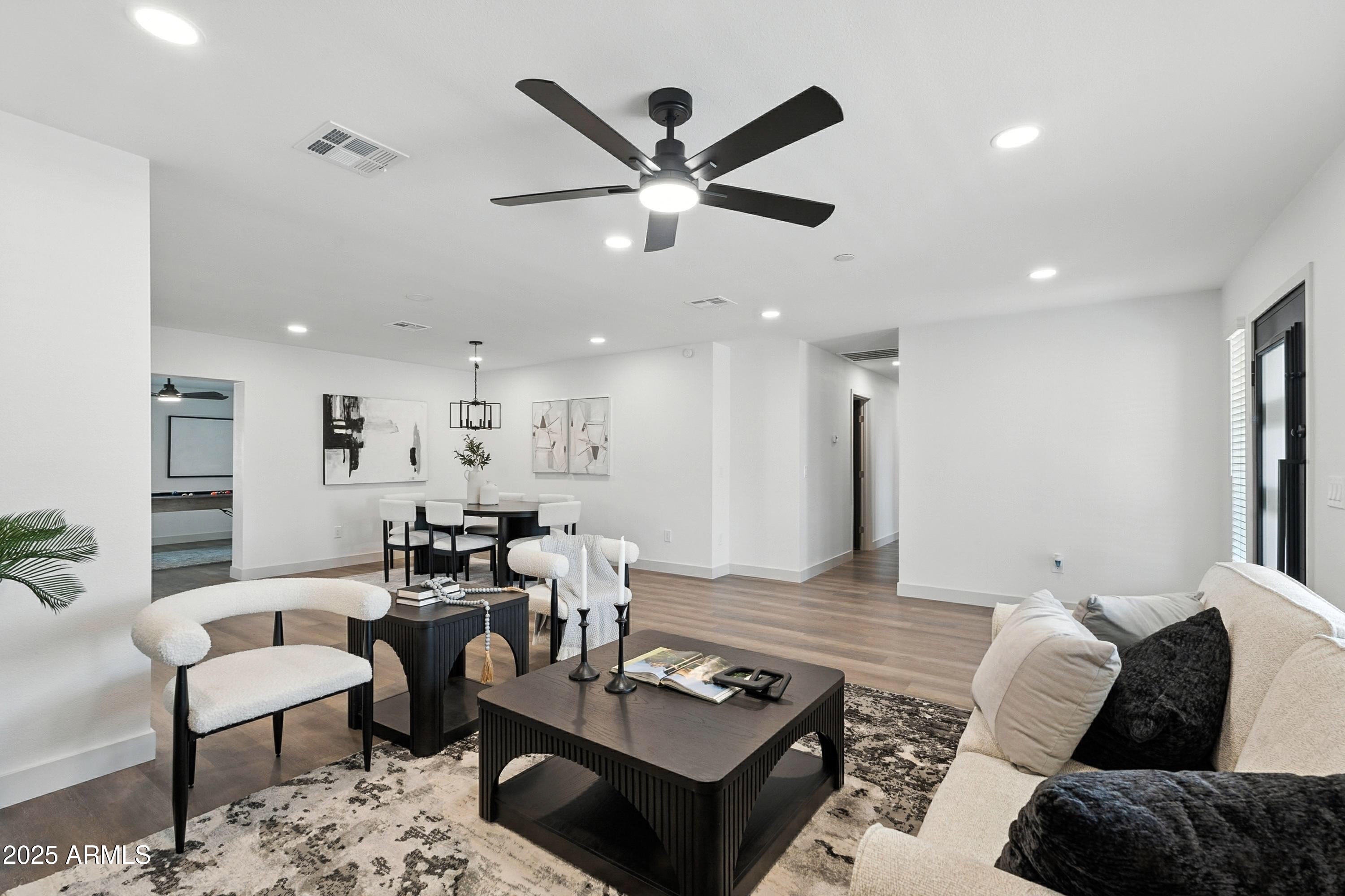 Discover this stunning single-story home featuring 4 spacious bedrooms and 2 modern bathrooms. The open floor plan boasts durable vinyl flooring, a bright kitchen with white cabinets, sleek quartz countertops, stainless steel appliances, and ample storage. Relax on the inviting front porch or entertain on the covered patio overlooking the fenced backyard. A 2-car garage and extended driveway provide plenty of parking and convenience. This home combines style, comfort, and functionality, making it perfect for everyday living and entertaining. Don't miss the chance to make this beautifully designed property your new home!