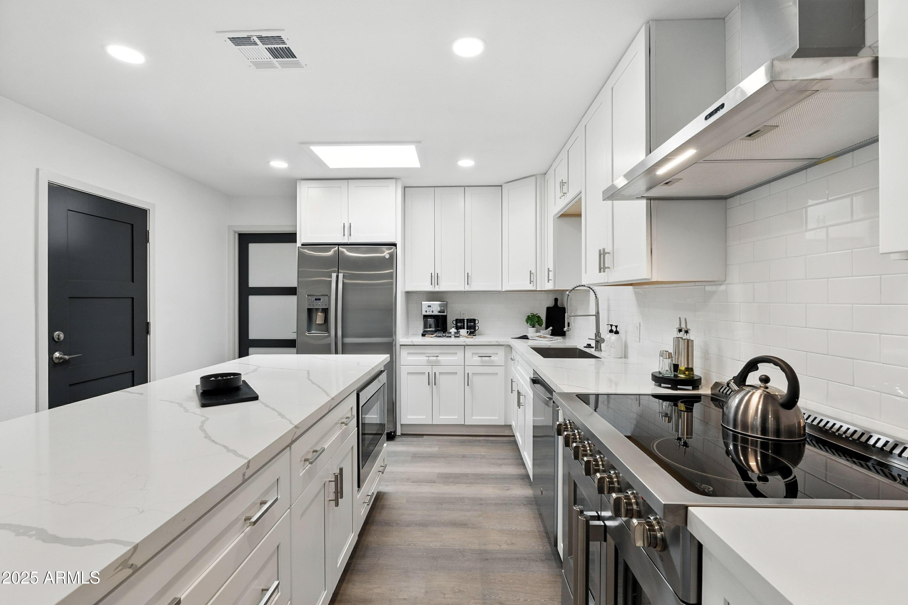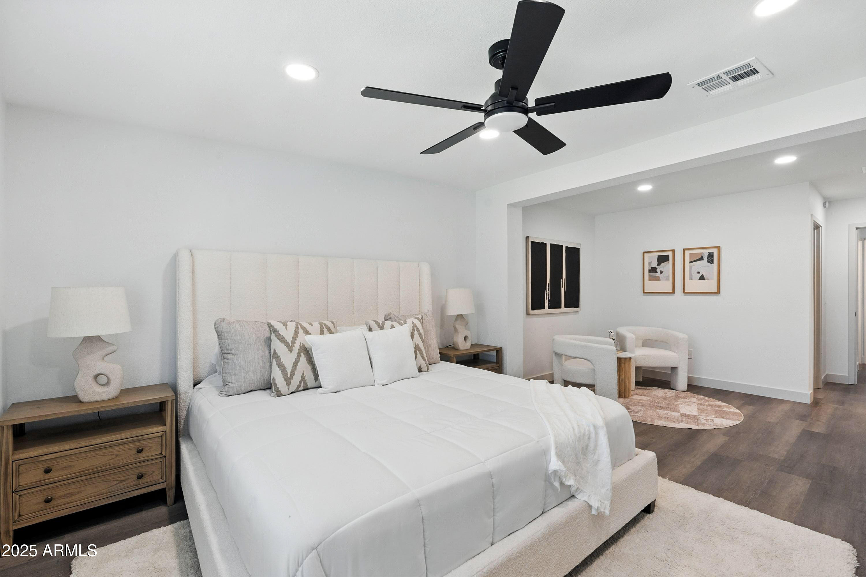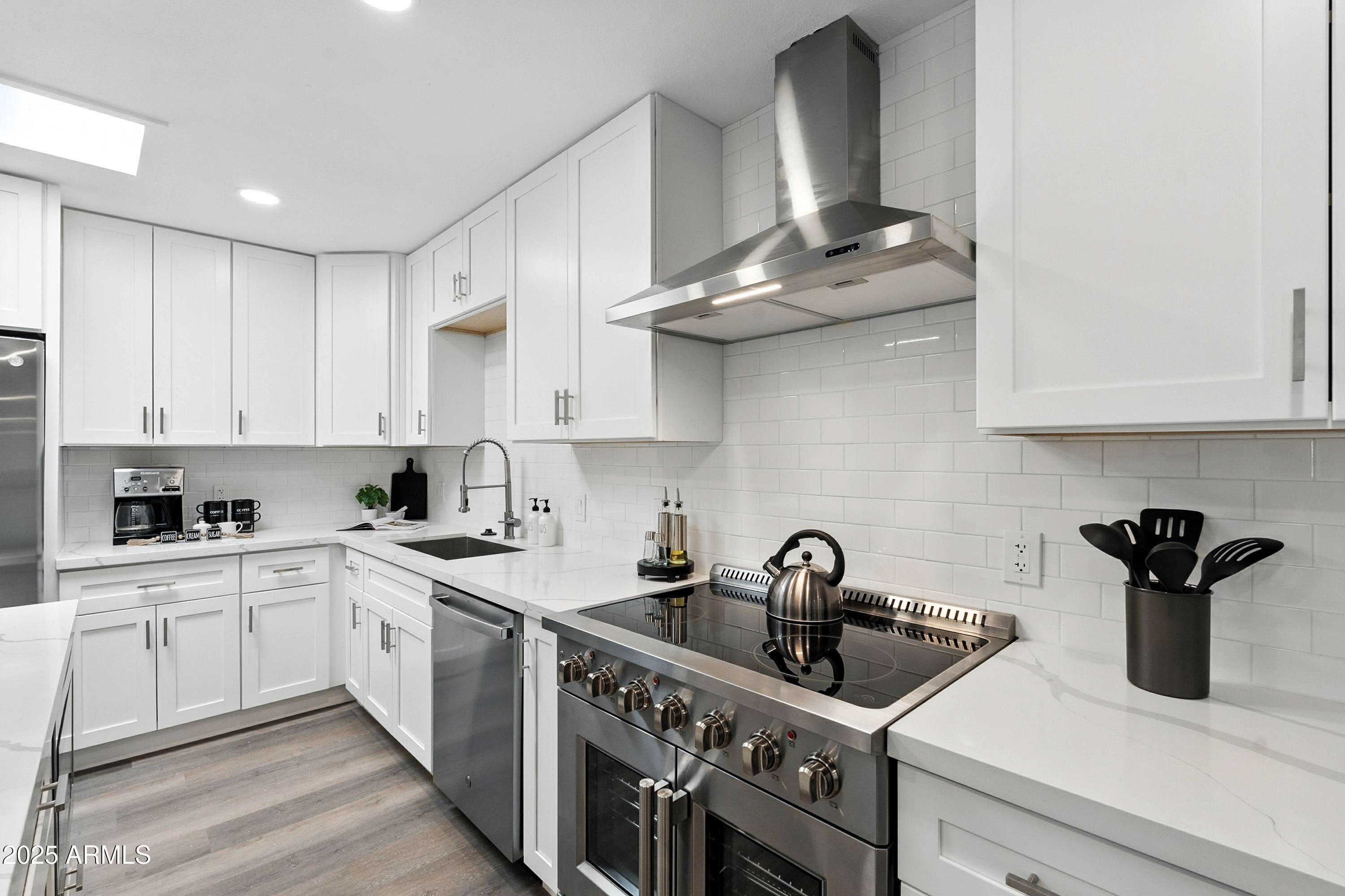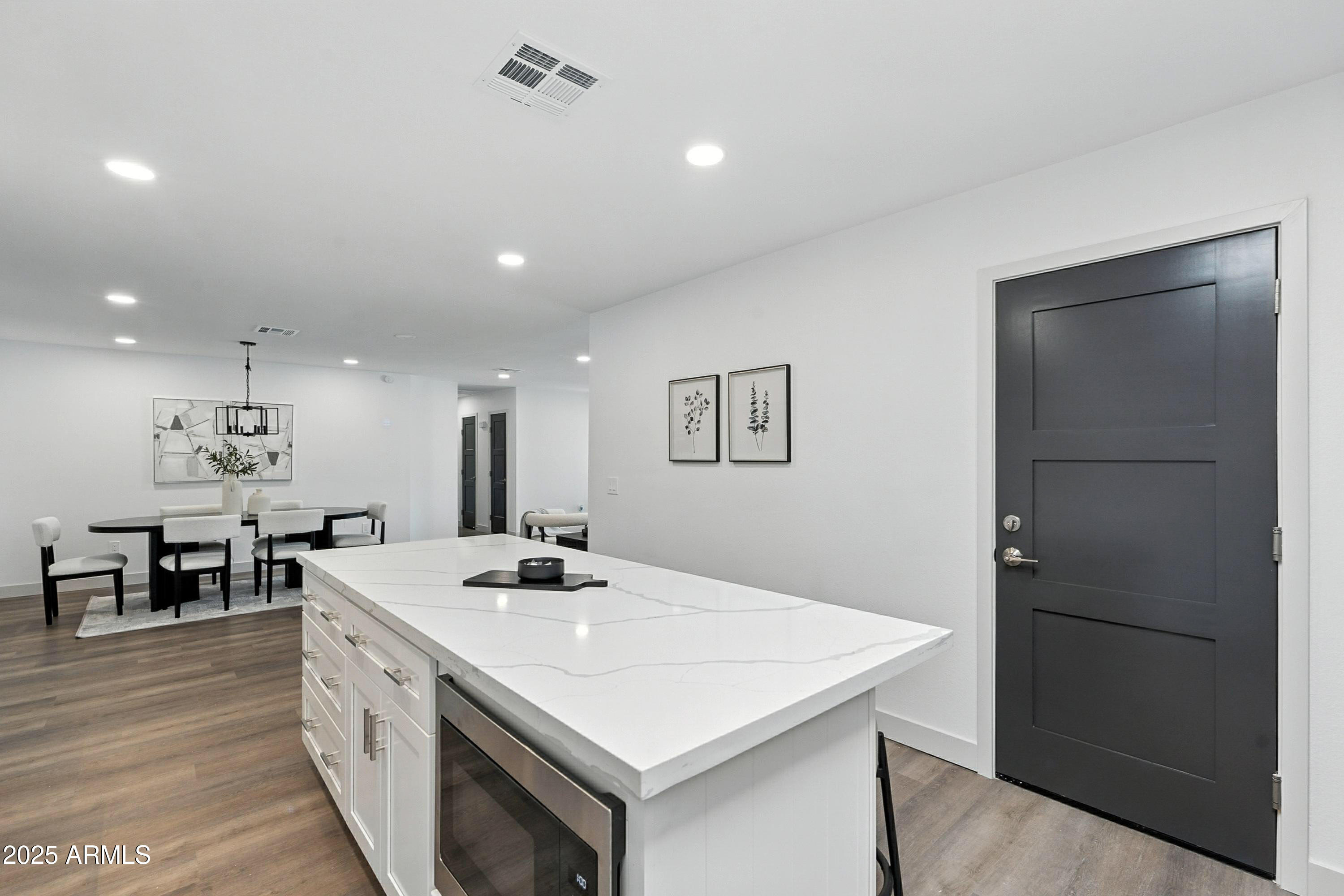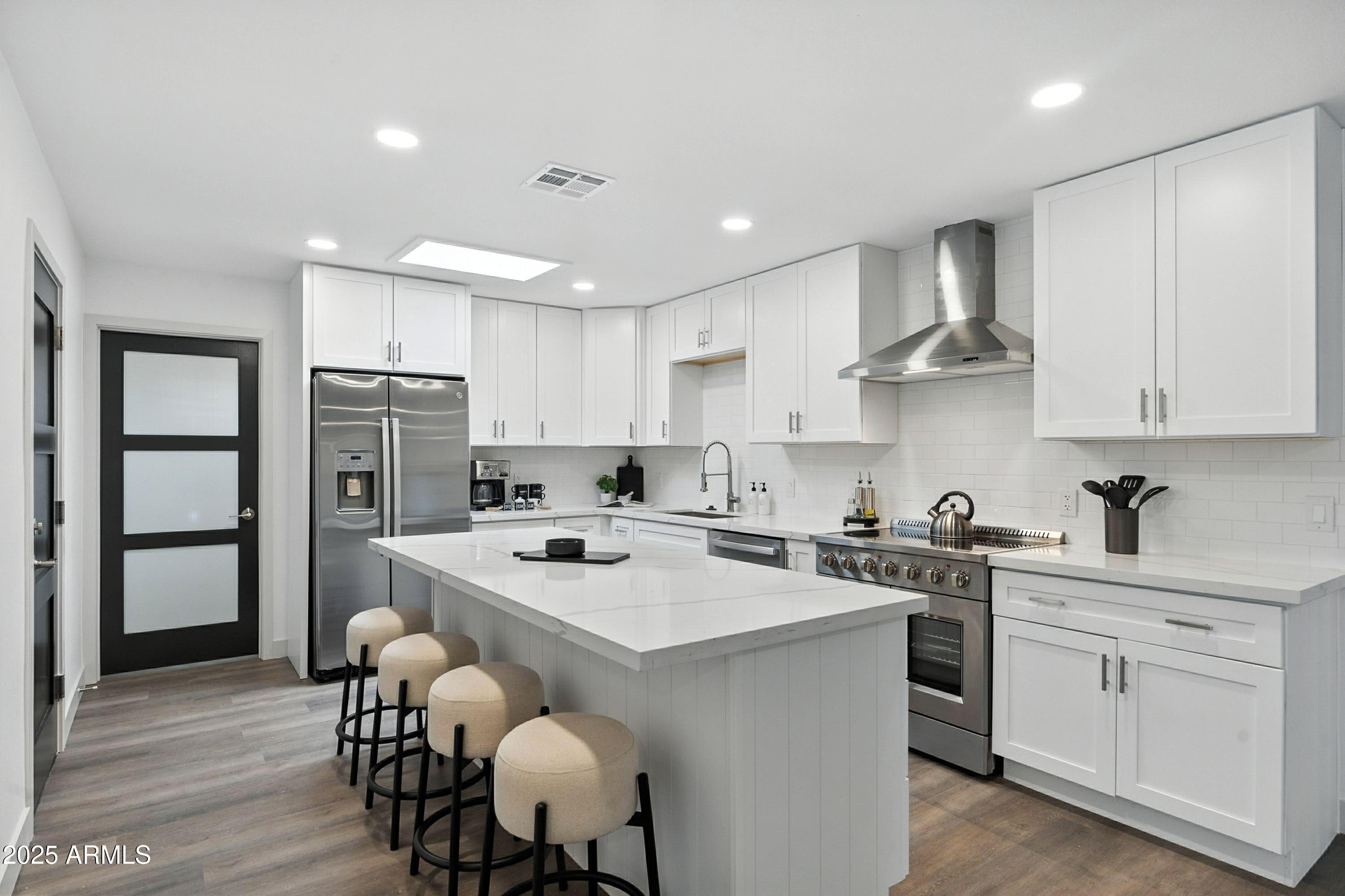 Discover this stunning single-story home featuring 4 spacious bedrooms and 2 modern bathrooms. The open floor plan boasts durable vinyl flooring, a bright kitchen with white cabinets, sleek quartz countertops, stainless steel appliances, and ample storage. Relax on the inviting front porch or entertain on the covered patio overlooking the fenced backyard. A 2-car garage and extended driveway provide plenty of parking and convenience. This home combines style, comfort, and functionality, making it perfect for everyday living and entertaining. Don't miss the chance to make this beautifully designed property your new home!