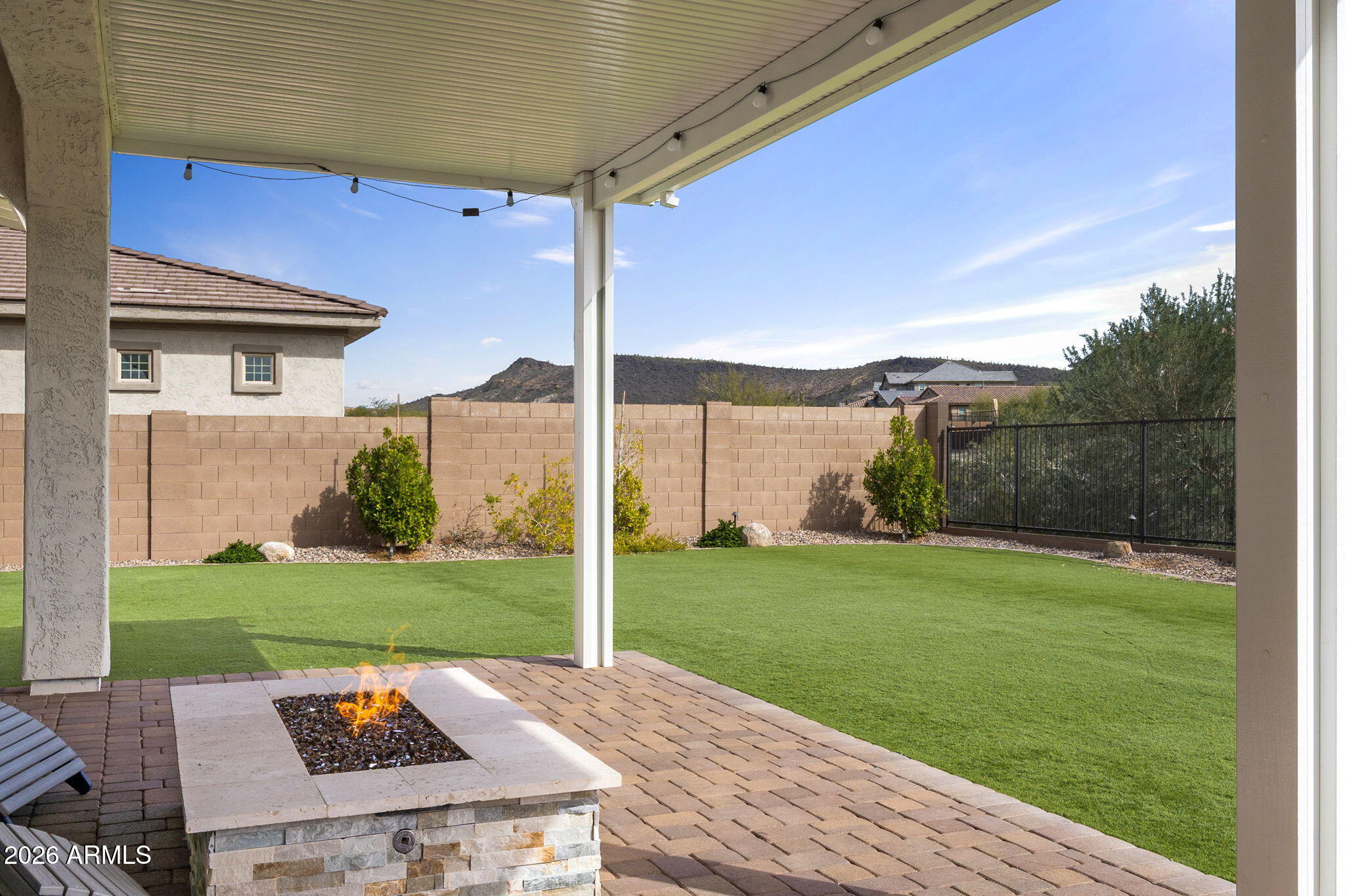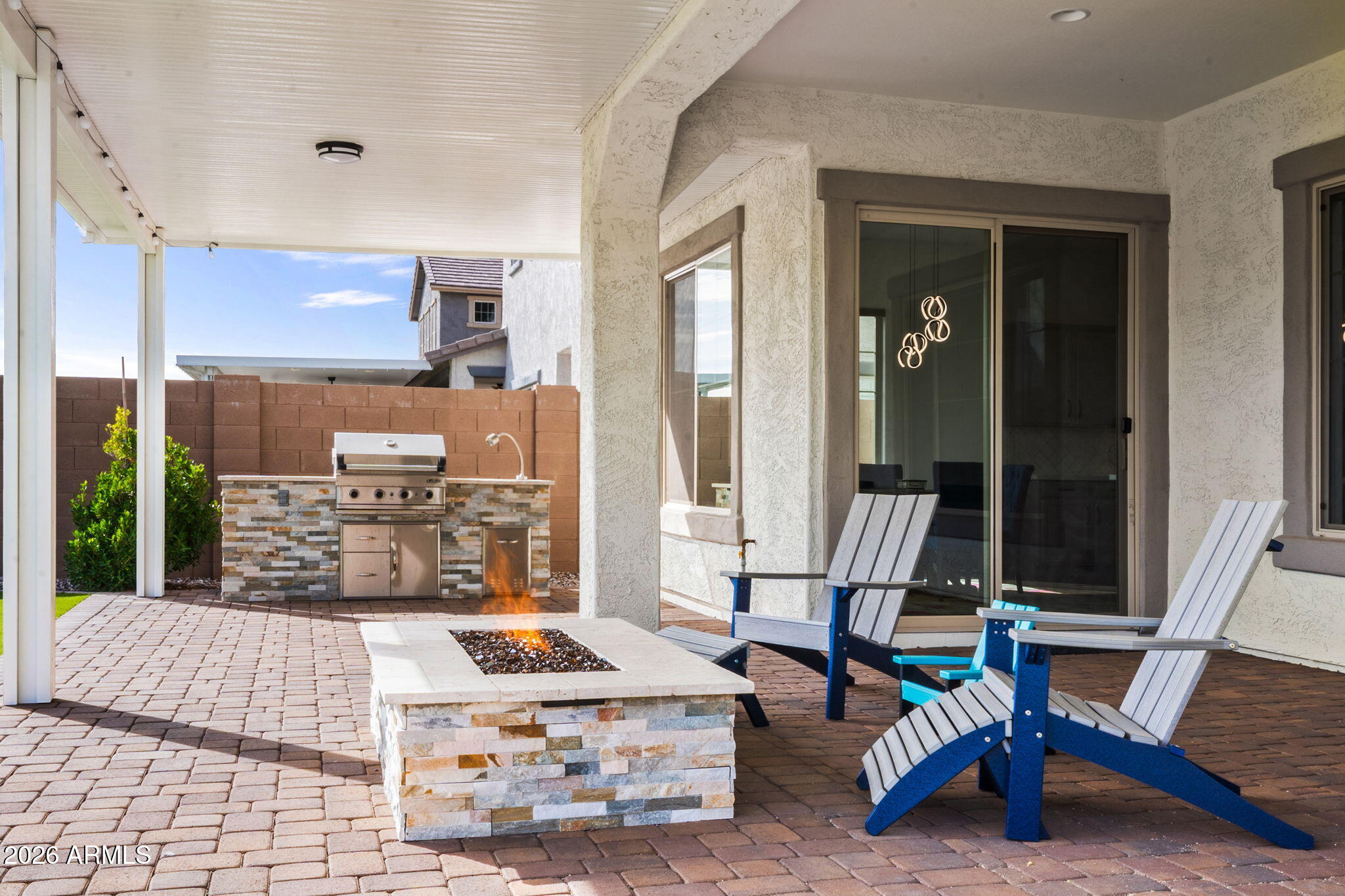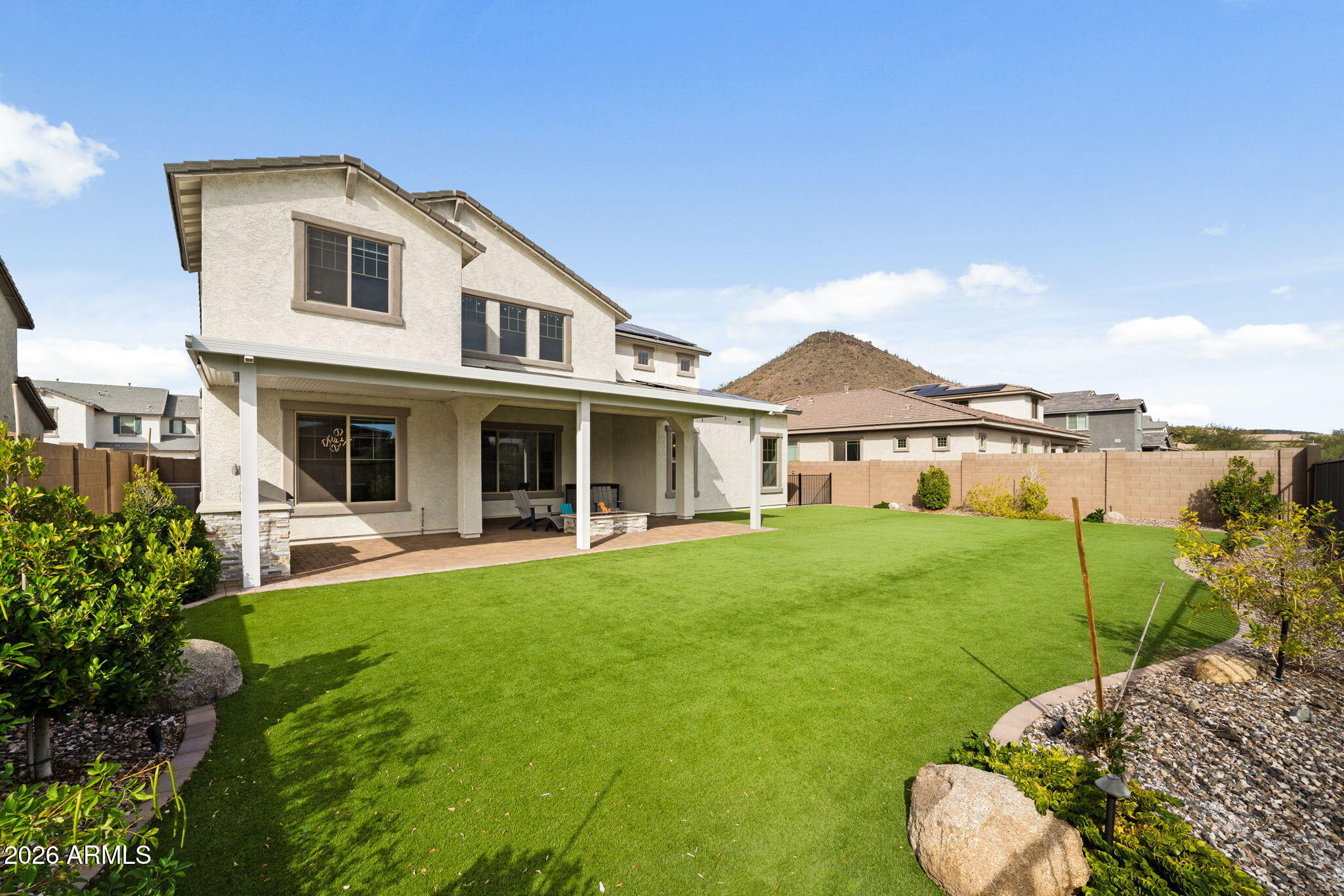 Outdoor living is equally impressive, featuring a covered patio with gas firepit, propane BBQ area, and low-maintenance turf and desert landscaping completed in 2023. Automatic electric roller shades across the back of the home provide effortless comfort and privacy.
