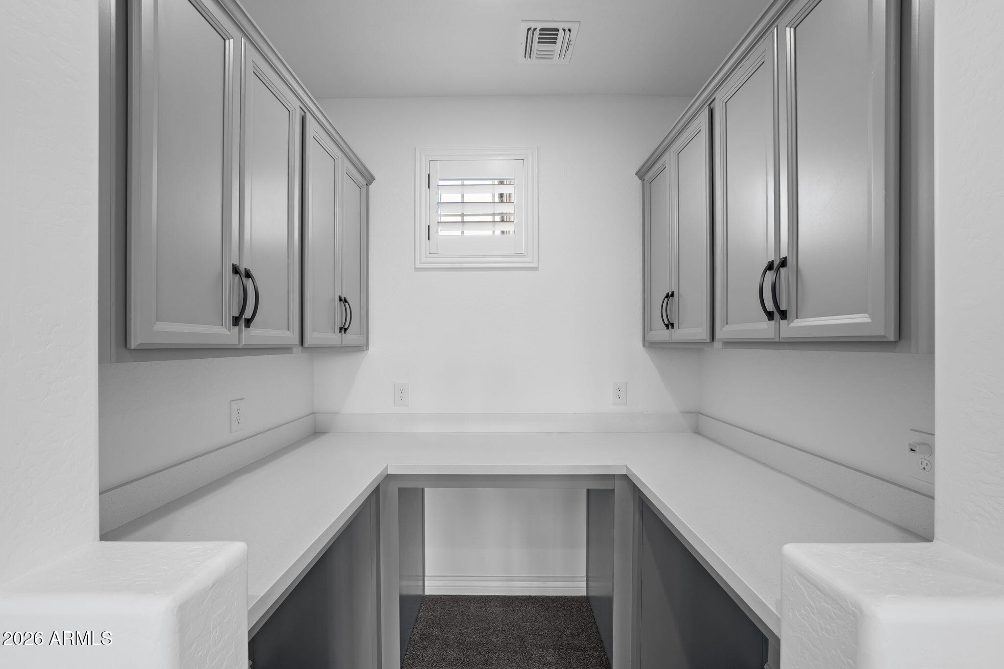 Laundry room with sink, cabinetry & storage