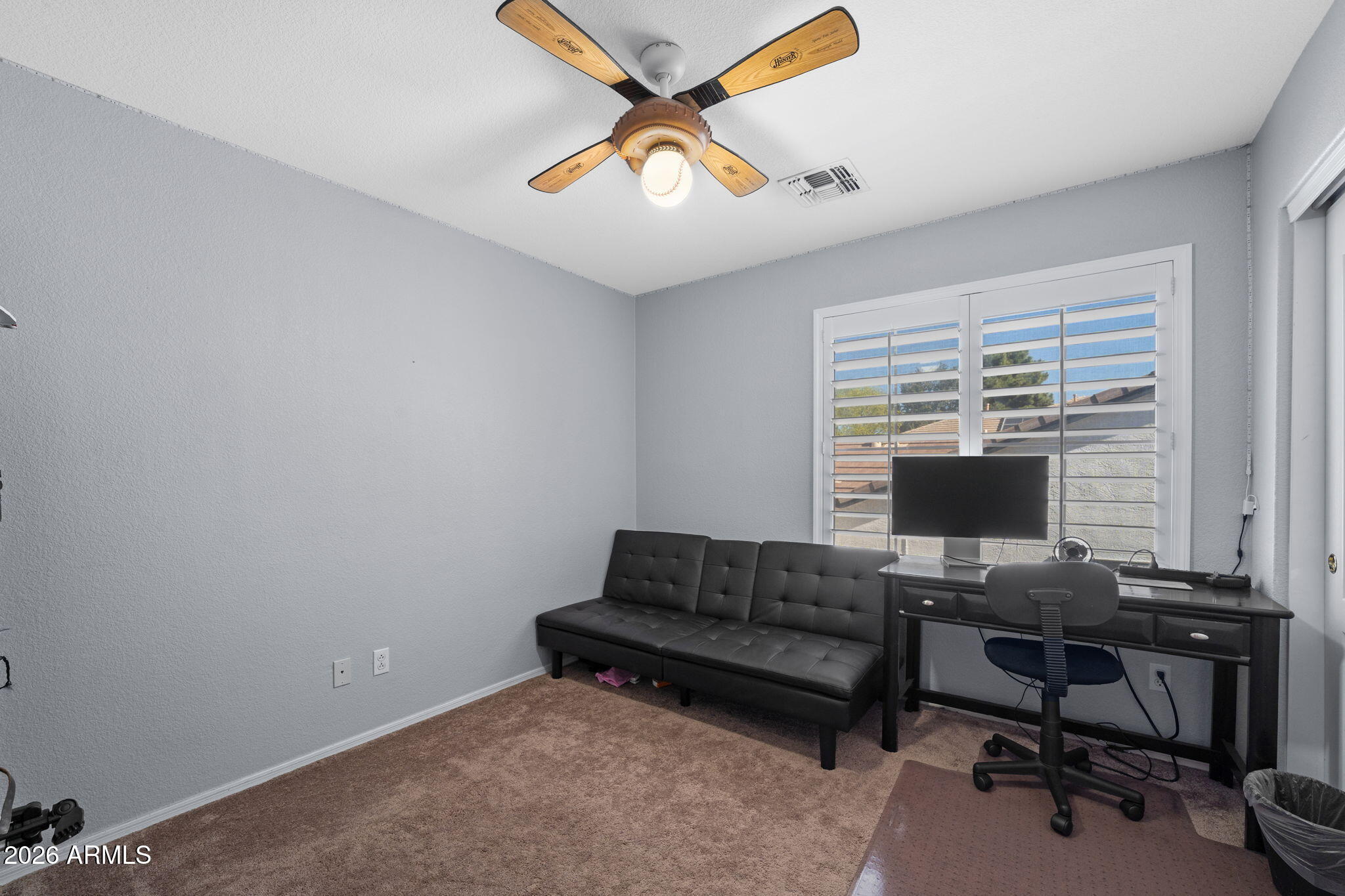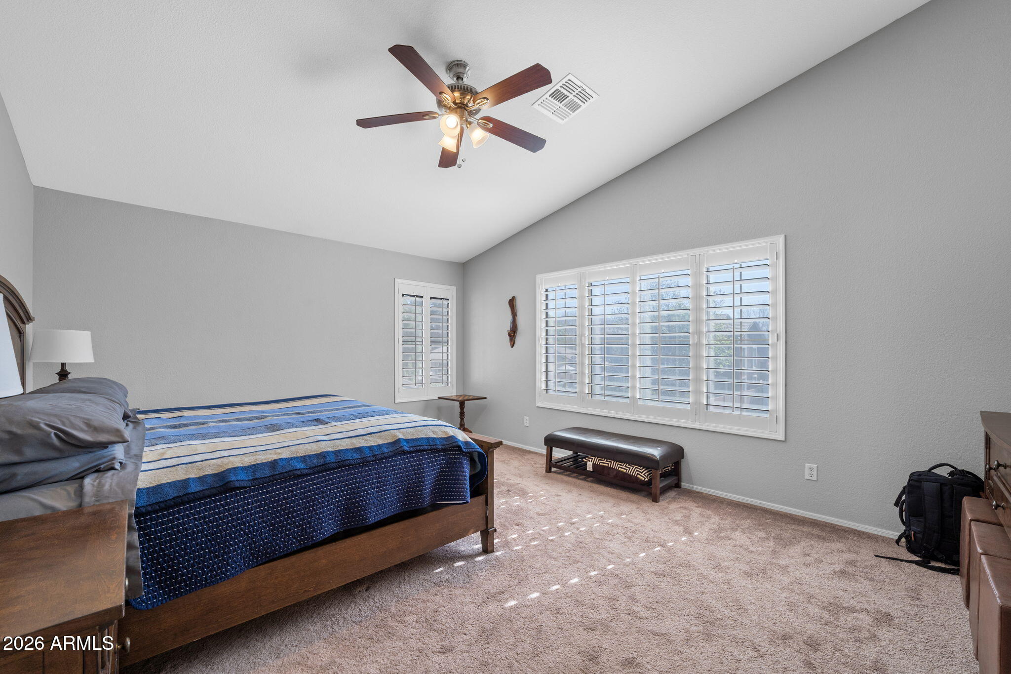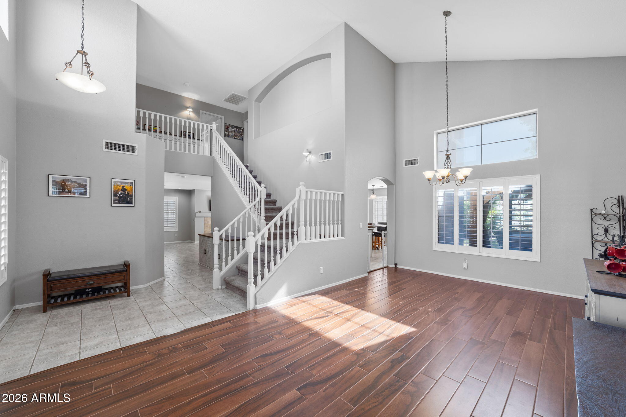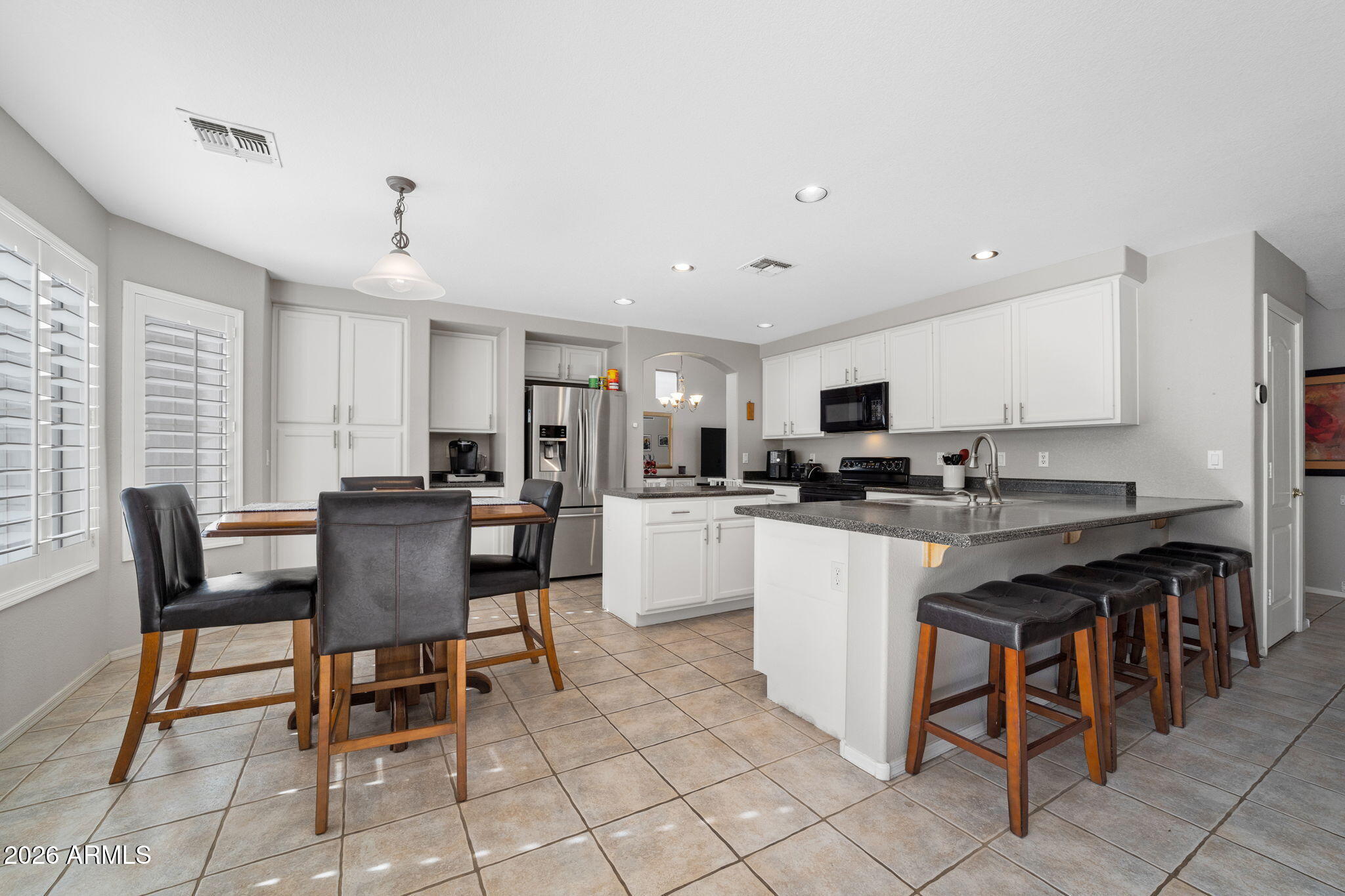 Welcome to Higley Groves, where comfort, space, and convenience come together in this beautiful 4-bedroom, 3-bath home with a 2.5-car garage. Ideally situated near the main park and greenbelt, this home is also within walking distance to an elementary school and just minutes from shopping, dining, and easy access to the US-60. Inside, you'll find a functional and inviting layout featuring plank tile and tile flooring throughout the main living areas, with carpet upstairs for added comfort. Shutter blinds enhance every room, and the fireplace creates a cozy focal point in the living space. The eat-in kitchen offers plenty of room for gathering and everyday meals. The spacious primary suite includes a spa tub and separate walk-in shower, creating a relaxing retreat. Additional highlights include a dog door, garage storage cabinets, and covered patios in both the front and backperfect for enjoying Arizona living year-round.