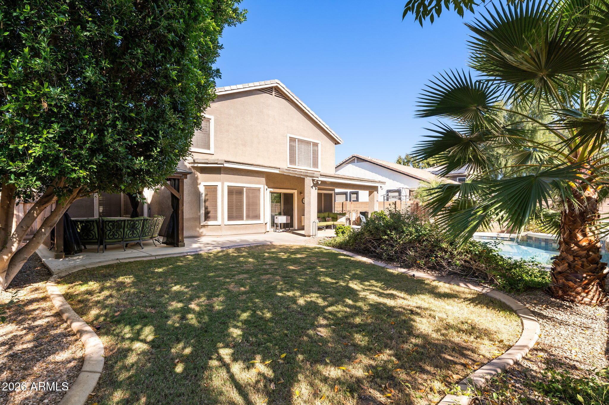 Step into the backyard oasis complete with a pool, a pergola-covered spa area, and a pump motor replaced approximately three years ago. (Spa will convey with a full-price offer.) Major systems have been updated for peace of mind, including dual AC units (2022) and a gas water heater (2022).