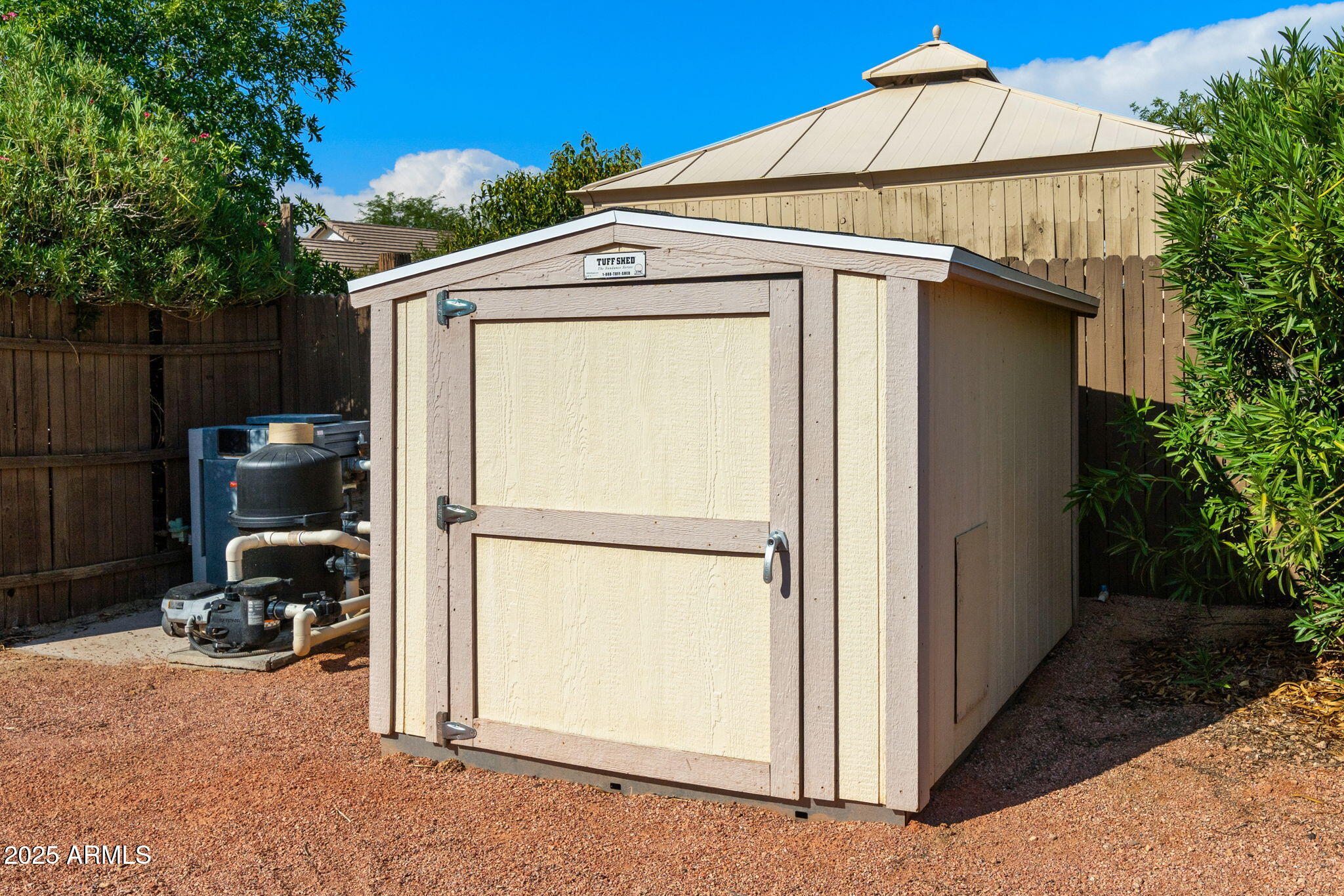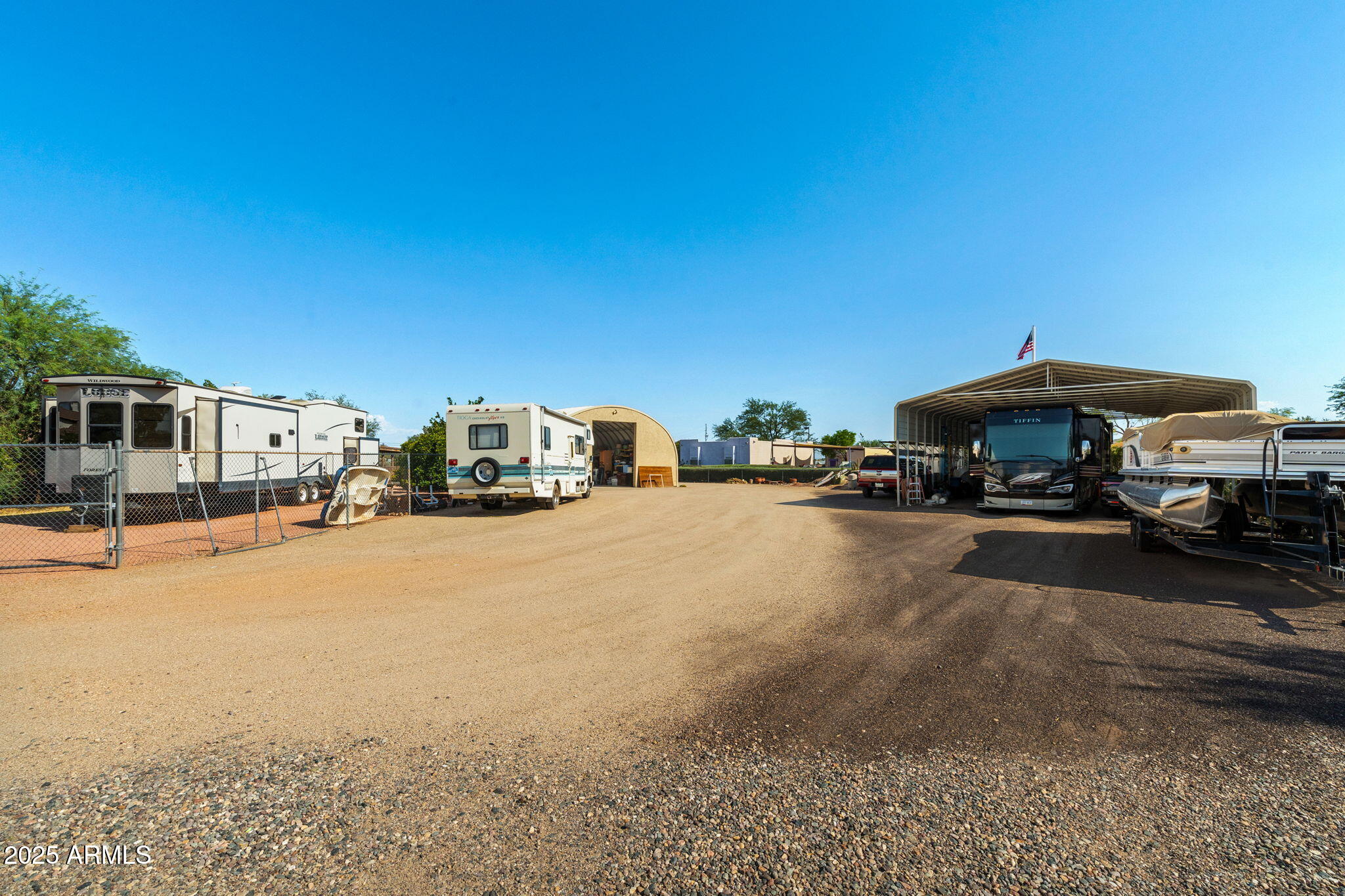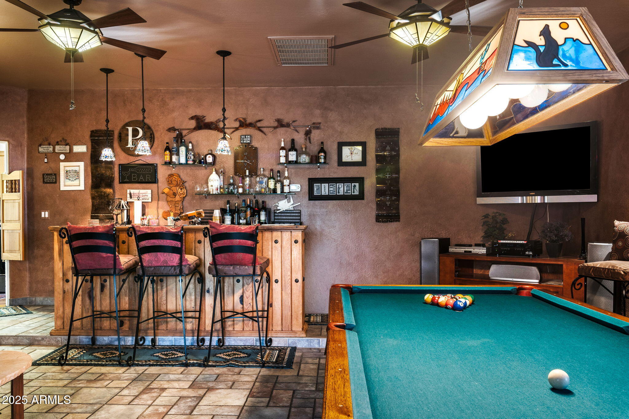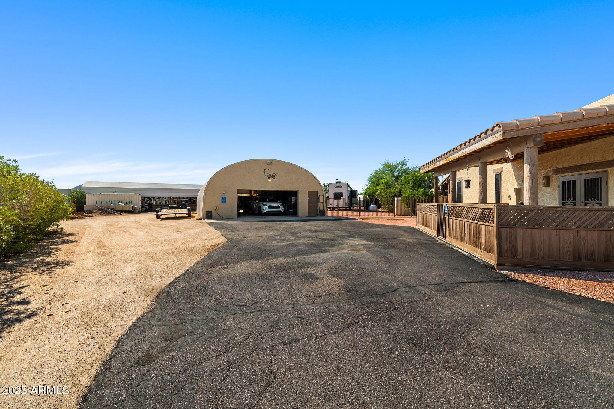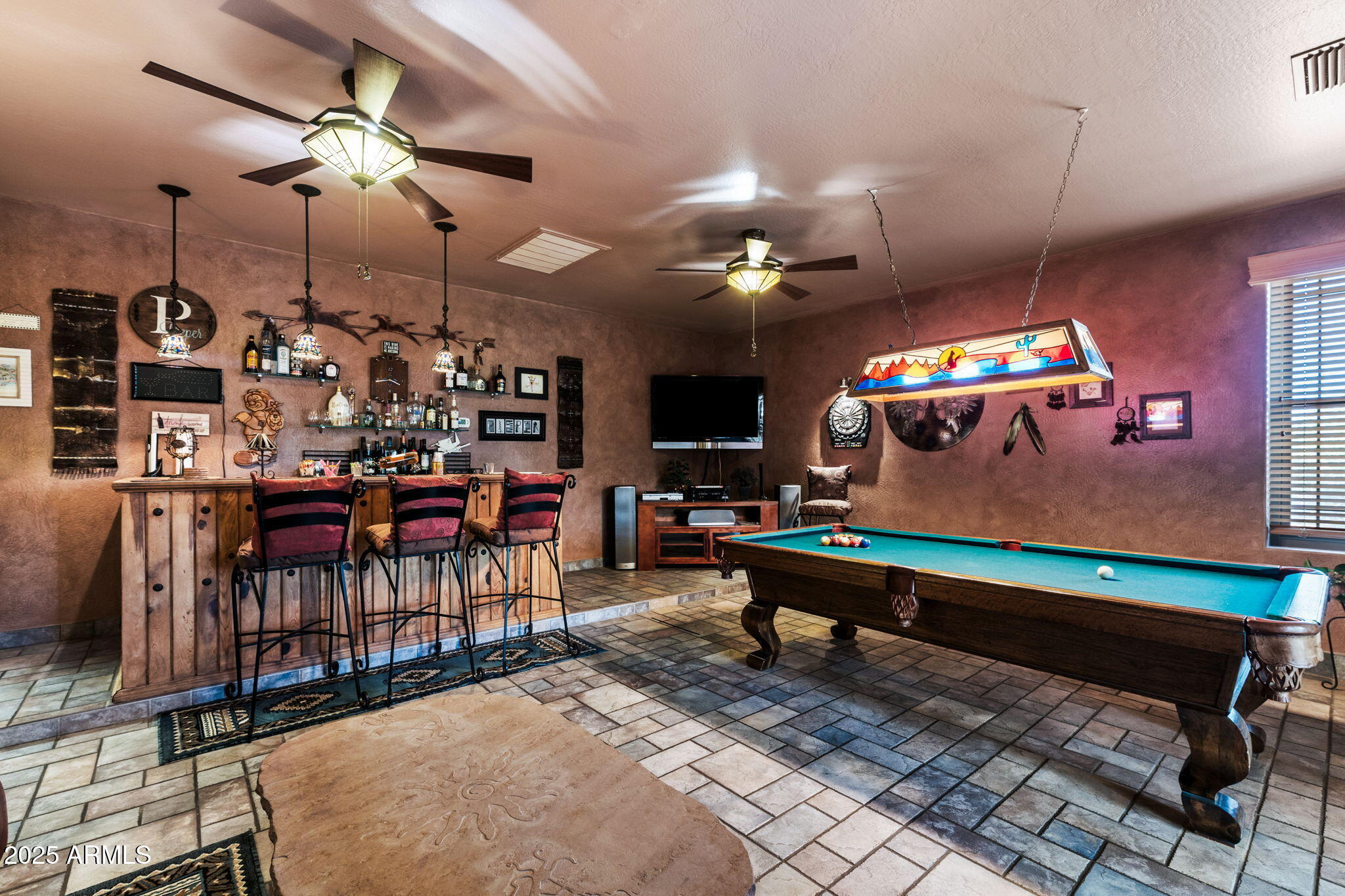 Step outside and discover what truly sets this property apart. The sparkling 5-foot deep pool with a waterfall feature invites you to relax under the Arizona sun, while the extended canopy patio and outdoor cooking area (with gas grill, steam table, and stove) make hosting effortless. For hobbyists, travelers, or car enthusiasts, the detached garage with upgraded 400-amp power can house up to 5-6 cars when empty and includes RV shelter with 3 hookups.