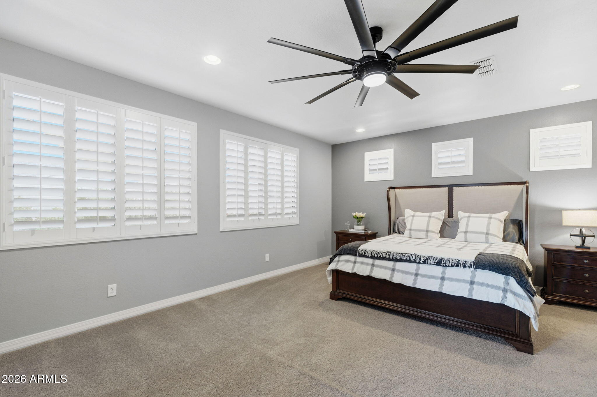Poised within The Bridges at Gilbert, this thoughtfully upgraded single-level residence delivers a refined balance of comfort, design, and modern livability. From the moment you enter, the home impresses with tile flooring throughout, plantation shutters in every room, and a cohesive design palette that feels both elevated and inviting. The open-concept living areas are enhanced by updated lighting, ceiling fans, and architectural details including custom barn doors at the pantry and playroom, adding warmth and character while maintaining functionality. The kitchen has been fully upgraded and serves as the heart of the home, featuring quartz countertops, stainless steel appliances, a new refrigerator, microwave, stovetop, dishwasher, garbage disposal, added backsplash, vertical shiplap detailing, and dual drink refrigeratorsall complemented by modern lighting and thoughtful storage. Reverse osmosis and a water softener further elevate everyday convenience.
