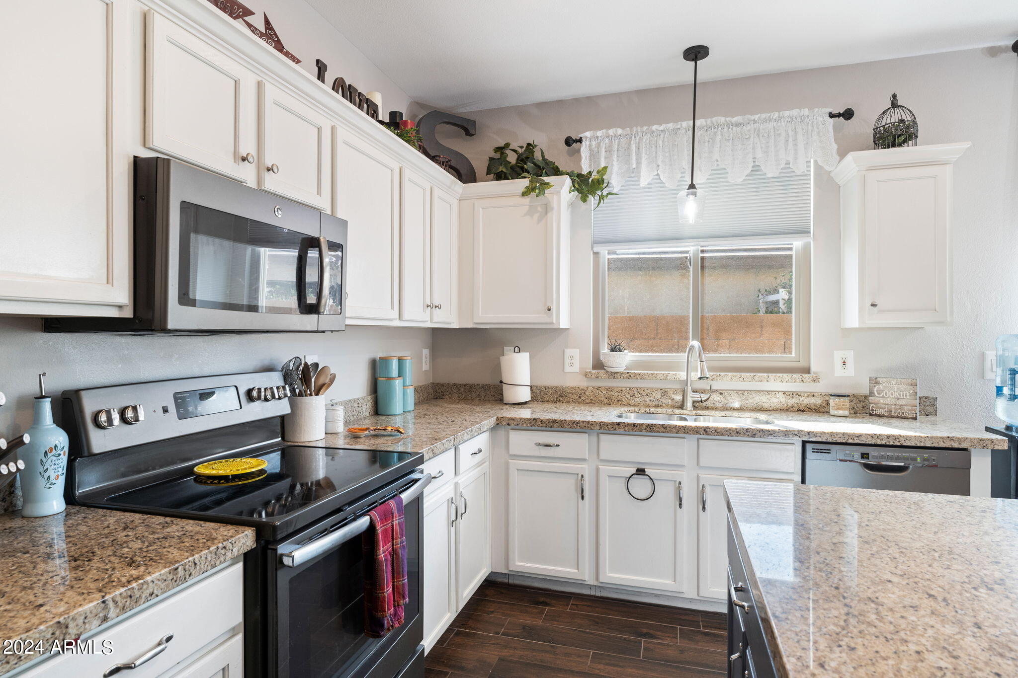 Welcome to your dream home! This beautifully updated property features an inviting rock-front landscape and low-maintenance artificial turf. Step inside to discover elegant tile and wood flooring throughout, creating a seamless blend of style and comfort. The updated kitchen is a chef's delight. Relax or entertain year-round on the spacious covered patio, perfect for outdoor living. This home combines luxury and convenience in every detail--don't miss the chance to make it yours!