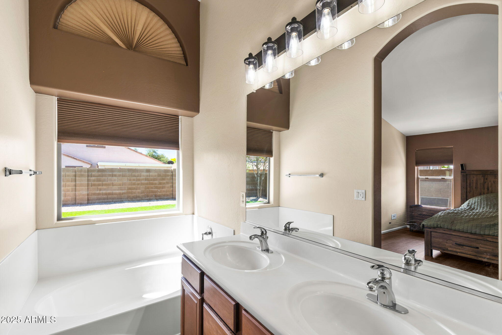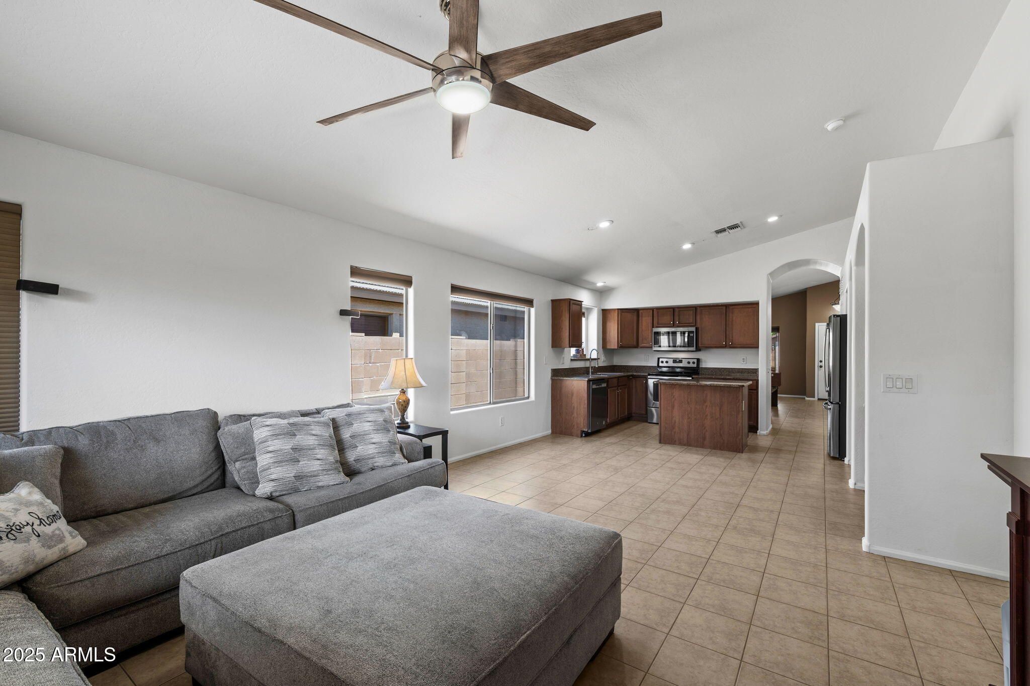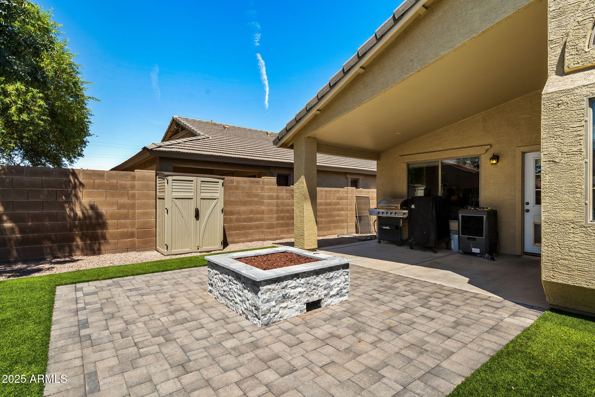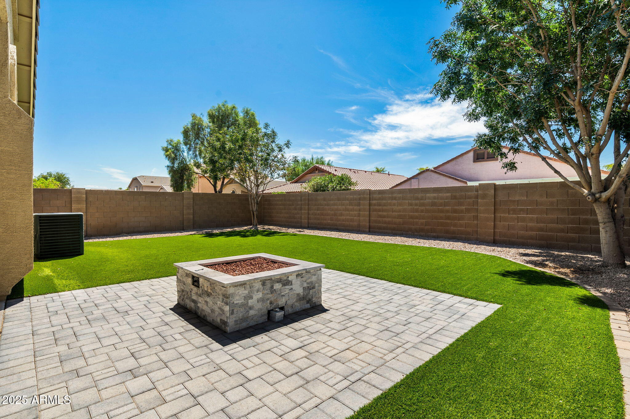Retreat outdoors to an entertainer's paradise. The backyard showcases a brand-new extended paver patio with a custom firepit, surrounded by low-maintenance turf and desert landscaping (front and back, 4 years old). LED lighting accents throughout the home add a sophisticated glow from every angle.