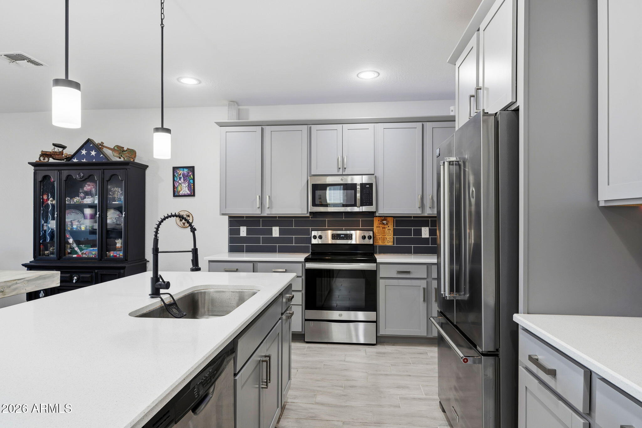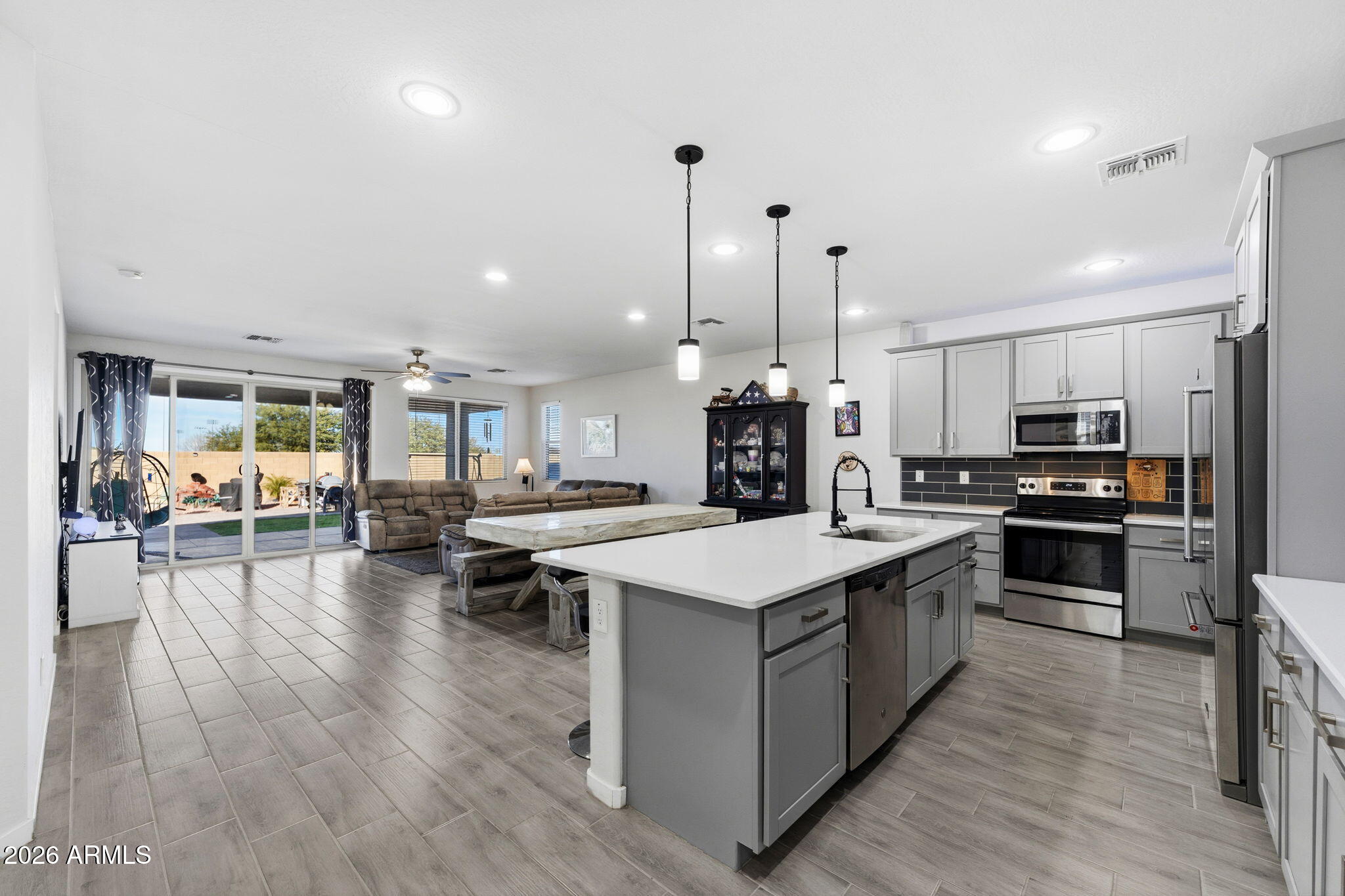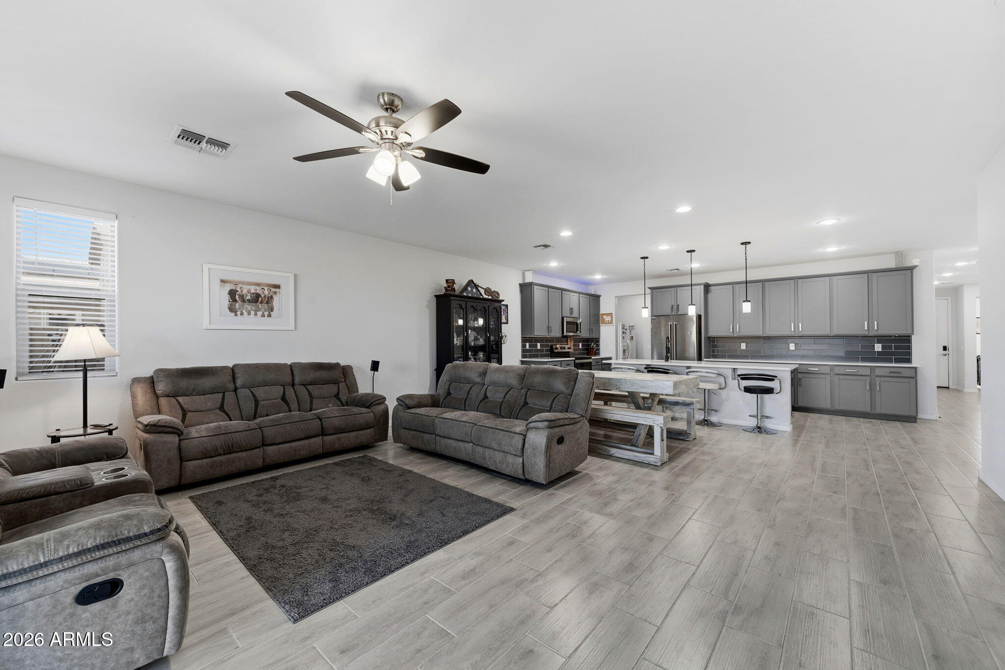 This thoughtfully designed home is packed with desirable upgrades and sits on a premium lot with no neighbors behind, backing to a park and canal for added privacy and peaceful views. Inside, the home features plank tile flooring and carpet throughout, quartz countertops, above-cabinet lighting, and a walk-in pantry that adds both style and function to the kitchen.